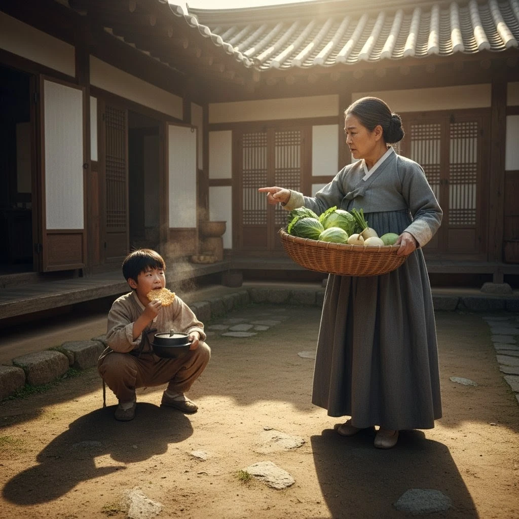 산돌은 먹던 주걱을 내려 넣고 입을 훔친 채로 안채로 달려갔다. 산돌이 가 헐레벌떡 안채로 뛰어오며 " 어르신 잡으셨나요? " 하고 큰 소리로 이산갑의 방앞에서 말을 했다.