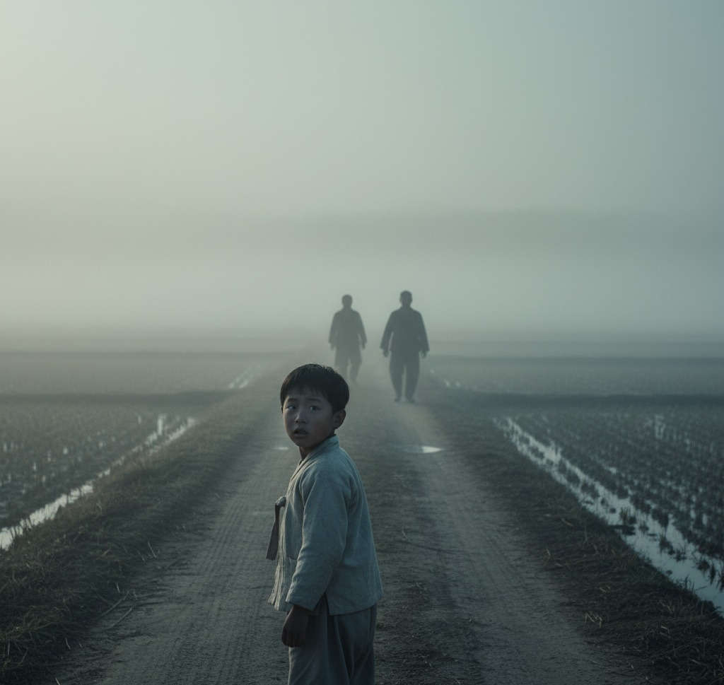 새벽 안개가 자욱한 시골길을 걸어가던 산돌이는 문득 뒤를 돌아보았다.