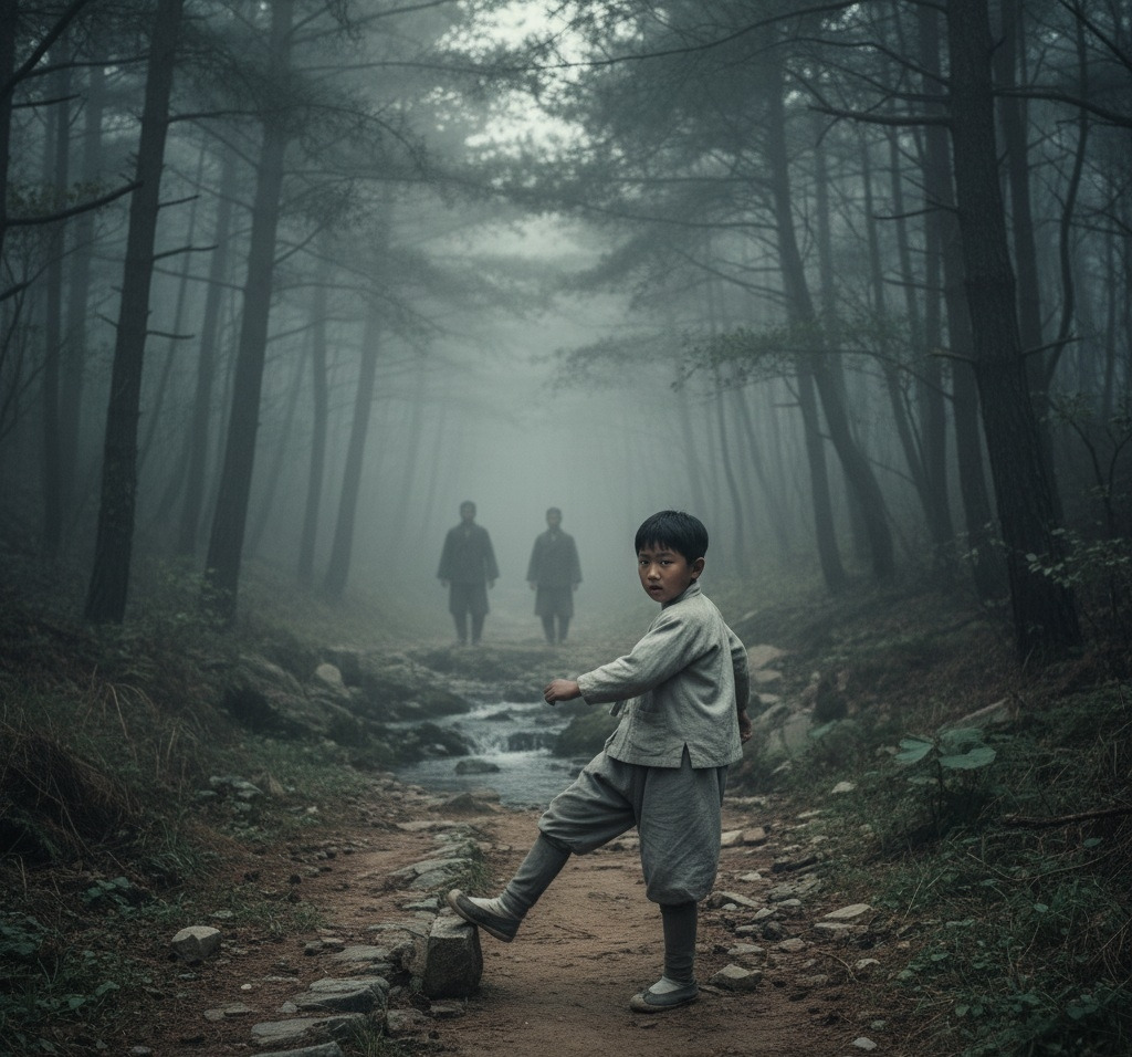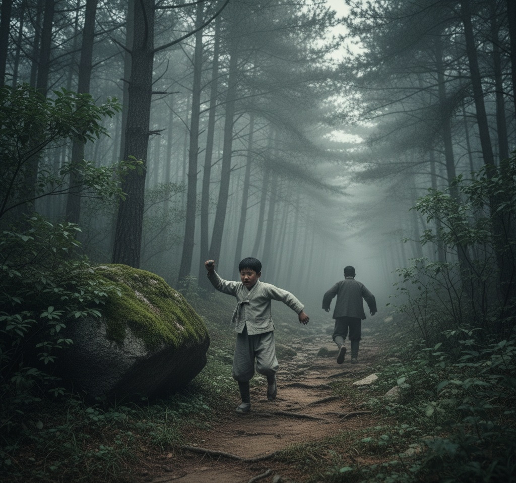 멀리서 두 사람이 자신과 같은 속도로 걸어오고 있었다. 처음에는 우연이라 생각했지만, 산돌이가 걸음을 늦추자 그들도 똑같이 속도를 줄였다.'이상하다...'산돌이는 가슴에 품은 서찰을 만지며 긴장했다. 마을을 지나 산길로 접어들면서 그는 일부러 돌멩이를 발로 차며 큰 소리를 냈다.
