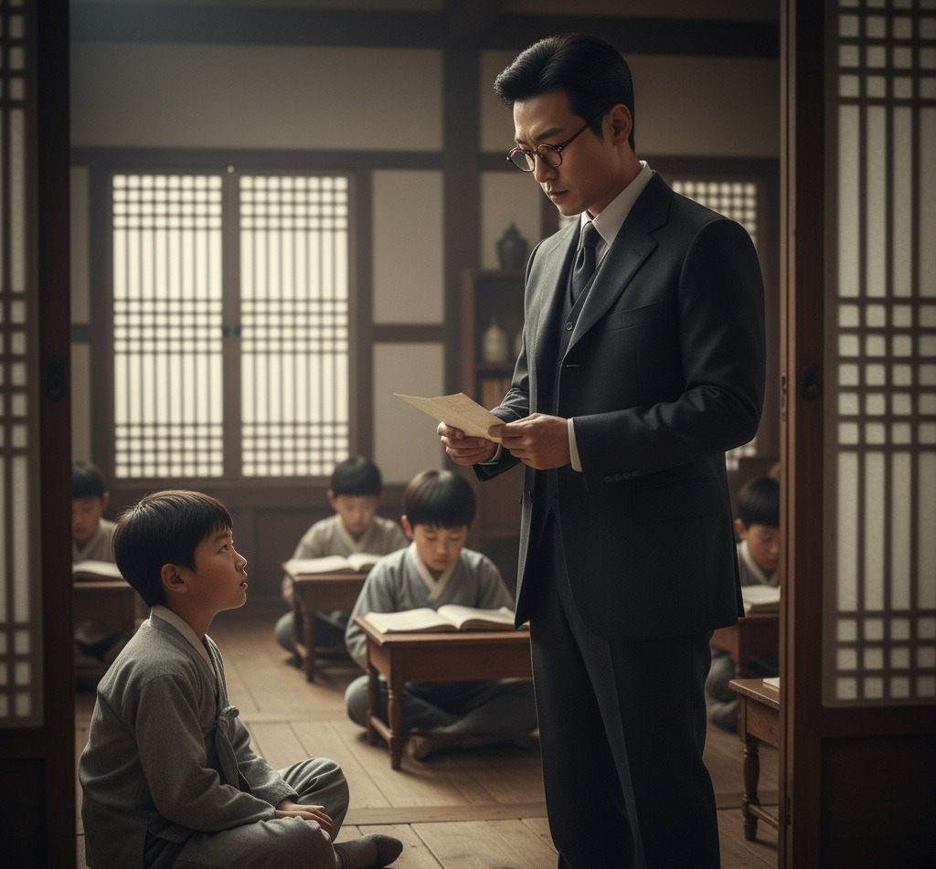 '명덕서당'이라는 낡은 현판이 걸려 있었다. 산돌이는 서당 앞을 몇 번 지나다니며 주변을 관찰했다. 별다른 이상이 없자 조심스럽게 대문을 두드렸다."누구십니까?"안에서 나이 든 선생의 목소리가 들렸다."안녕하십니까. 이산갑 어르신의 심부름으로 왔습니다."잠시 후 대문이 열렸다. 백발의 노인이 산돌이를 위아래로 살폈다."들어오게."서당 안은 조용했다. 몇 명의 아이들이 책을 읽고 있었지만, 선생은 산돌이를 안쪽 작은 방으로 안내했다."정혁진 어른을 찾아왔습니다.""정 선생은 점심때쯤 오신다고 하셨네. 잠시 기다리게."한 시간쯤 지났을까. 대문 쪽에서 발소리가 들렸다. 곧이어 서른대 중반쯤 되어 보이는 남자가 들어왔다. 단정한 양복 차림에 안경을 쓴 모습이 여느 지식인과 다름없었다."어르신, 손님이 오셨습니다.""아, 그렇습니까?"정혁진은 산돌이가 있는 방으로 들어왔다.