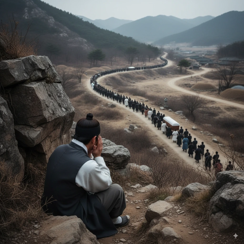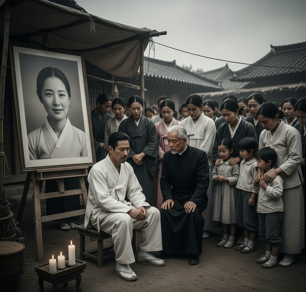 사흘째 되는 날, 성당의 김 신부가 도착했다."이산갑 형제님, 서영 자매를 위해 성사를 드리겠습니다."김 신부는 촛불을 밝히고 성수를 뿌리며 조용히 기도를 올렸다."주님, 당신의 종 윤서영을 당신의 품으로 받아주소서. 그녀가 이 땅의 아이들을 위해 바친 사랑을 기억해 주소서."영정 앞에서 신부의 라틴어 기도가 울려 퍼졌다. 조문객들도 함께 고개를 숙이고 묵념했다. 하지만 이 모든 장면을 멀리서 지켜보는 한 사람이 있었다. 백정치였다. 그는 마을 뒷산 바위틈에 숨어 장례식장을 내려다보고 있었다. 서영의 관이 묘지로 향하는 행렬을 보며 그의 가슴은 찢어질 듯 아팠다.'내가... 내가 죽인 거야...'백정치는 두 손으로 얼굴을 감쌌다. 며칠째 제대로 잠도 자지 못하고 밥도 넘기지 못했다.'서영이... 미안해... 정말 미안해...'그의 눈에서 눈물이 주르르 흘러내렸다. 어린 시절 서영이 자신에게 한글을 가르쳐주던 모습, 따뜻하게 웃어주던 그녀의 얼굴이 계속 떠올랐다. 장례 행렬이 지나간 후에도 백정치는 그 자리에서 움직이지 못했다. 해가 지고 달이 뜰 때까지 그는 바위에 기대앉아 울음을 삼켰다."어머니... 저 때문에... 저 때문에 서영이 누나가..."집으로 돌아온 백정치는 어머니 앞에서 무너져 내렸다."얘야, 무슨 소리냐?""제가... 제가 밀고를 했어요. 그래서 서영이 누나가 잡혀간 거예요..."백정치의 어머니는 아들의 고백에 충격을 받았다."네가... 네가 그런 일을...""어머니, 저는 어떻게 해야 해요? 어떻게 해야 해요?"백정치는 바닥에 엎드려 통곡했다. 그의 양심은 이미 지옥의 고통을 맛보고 있었다.