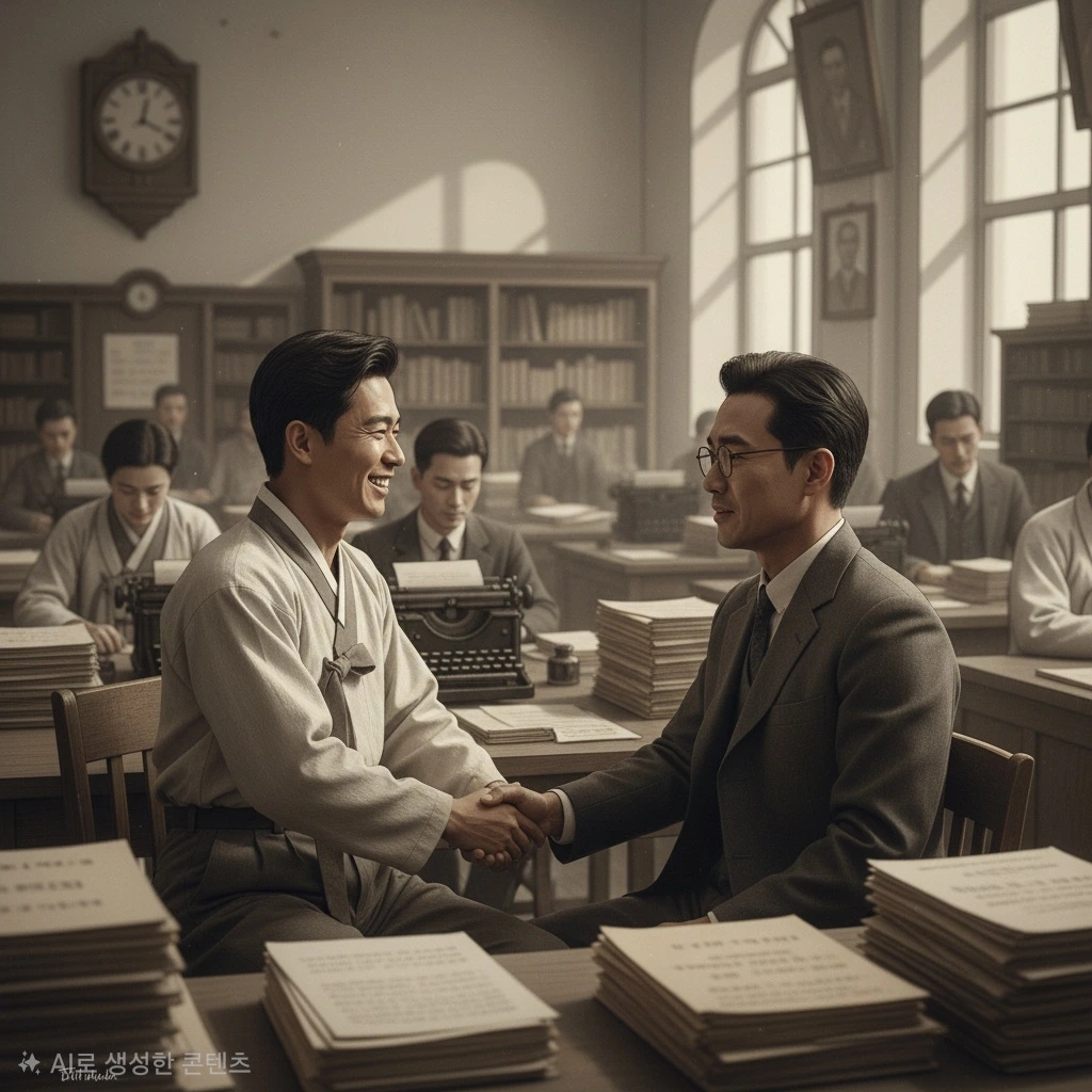 이산갑은 복도를 걸어 서기실로 들어갔다. 책상 앞에서 서류를 정리하던 이산호가 형을 보고 반가운 표정을 지었다.