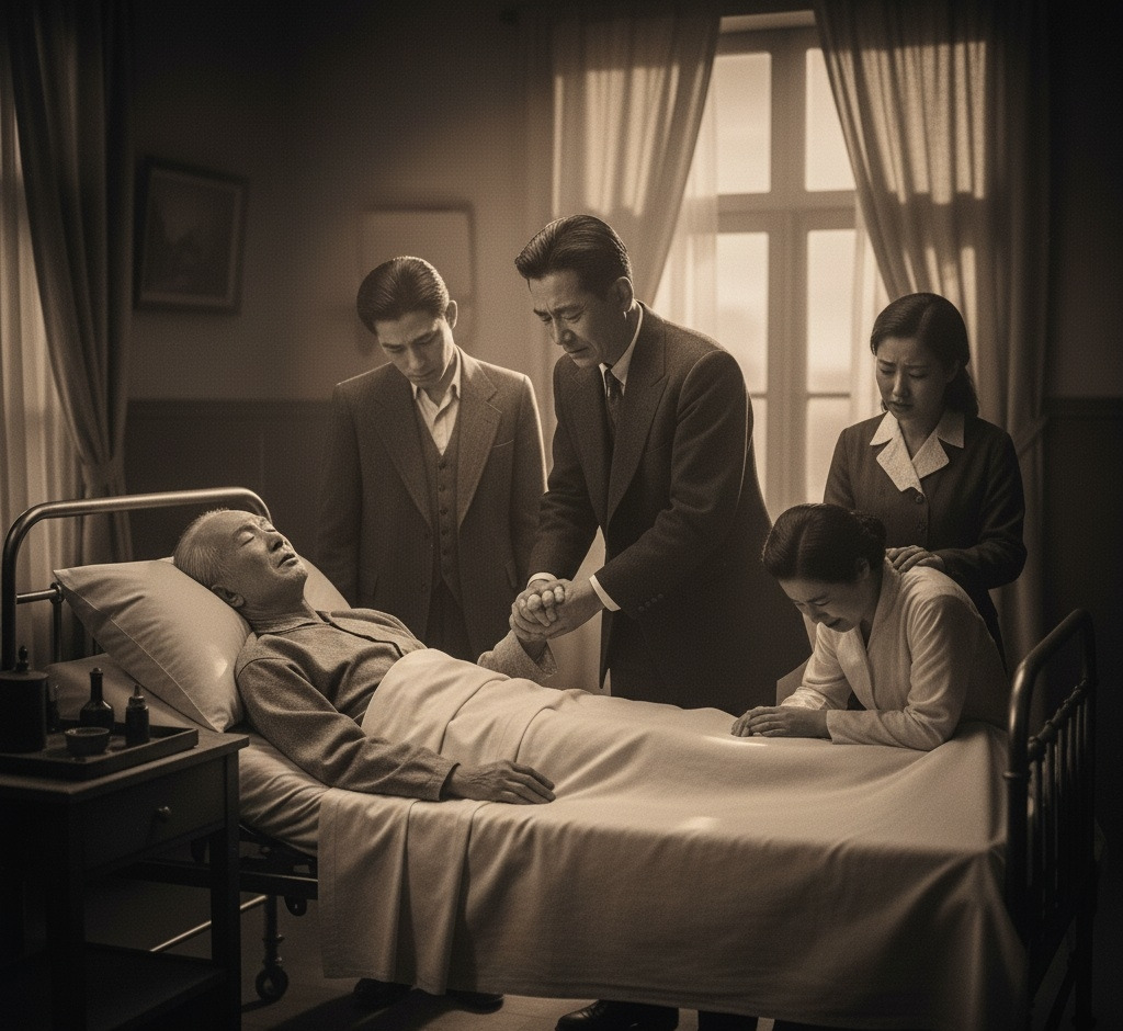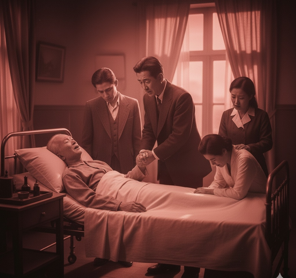 침대 발치에는 둘째 아들 박구용이 서 있었다. 그는 주먹을 꽉 쥔 채, 고개를 숙이고 어깨를 떨고 있었다.