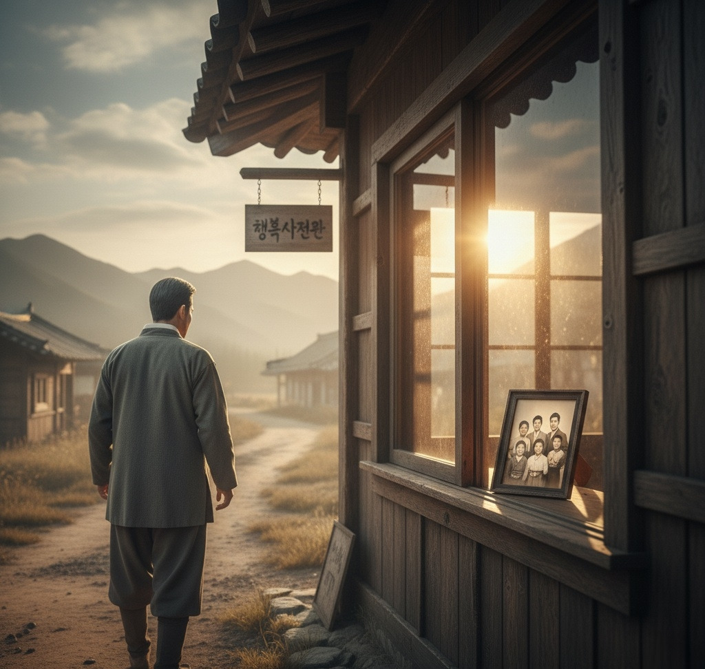멀리 떨어진 사진관 창가에는, 가족들이 기념일을 맞아 찍은 사진 액자가 아침의 평화로운 분위기 속에서 잔잔한 미소를 자아내고 있다.'그 들은 이 작은 행복조차 마음껏 누릴 수 없는 세상이라니...'이산갑은 애써 복잡한 심정을 감추고, 산을 향해 천천. 히 발걸음을 옮겼다.