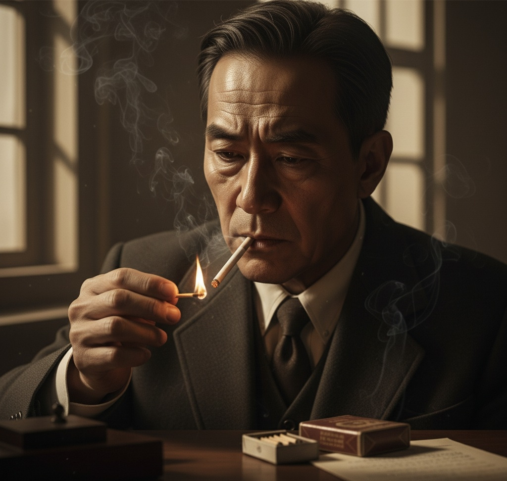 그는 담배를 꺼내 불을 붙였다. 연기가 천천히 피어올랐다.