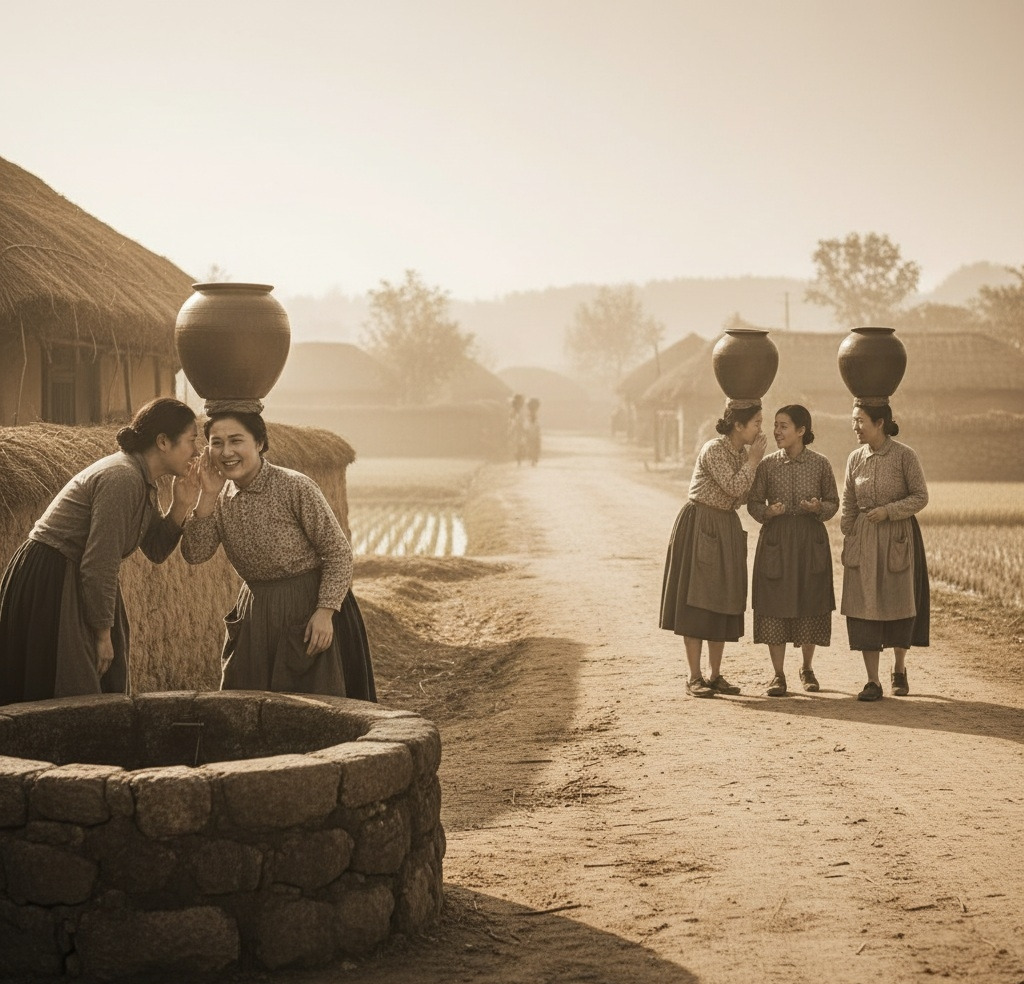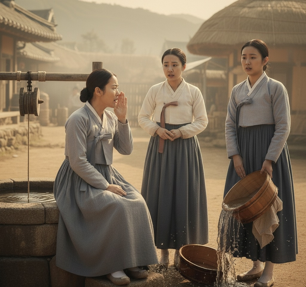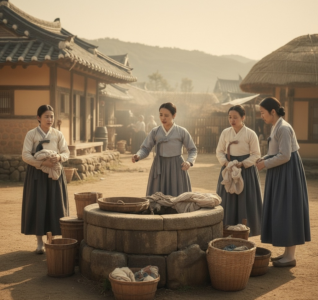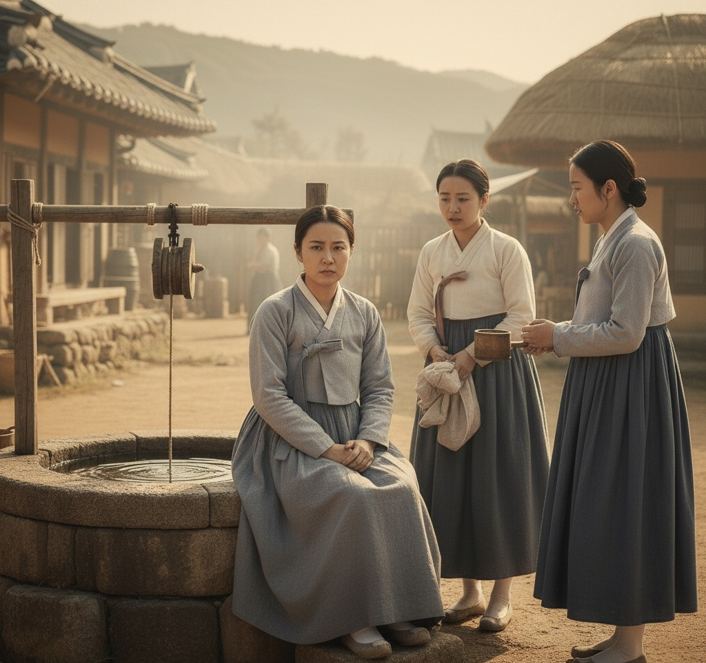 양군자는 빨래를 들고 우물가로 나갔다. 거기에는 이미 여러 아낙네들이 모여 있었다.