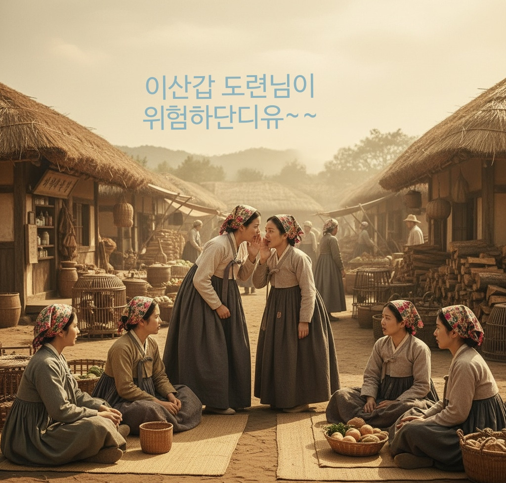 장터 아낙 1: "들었제유? 이산갑 도련님 학당이 위험하다는디유?"
