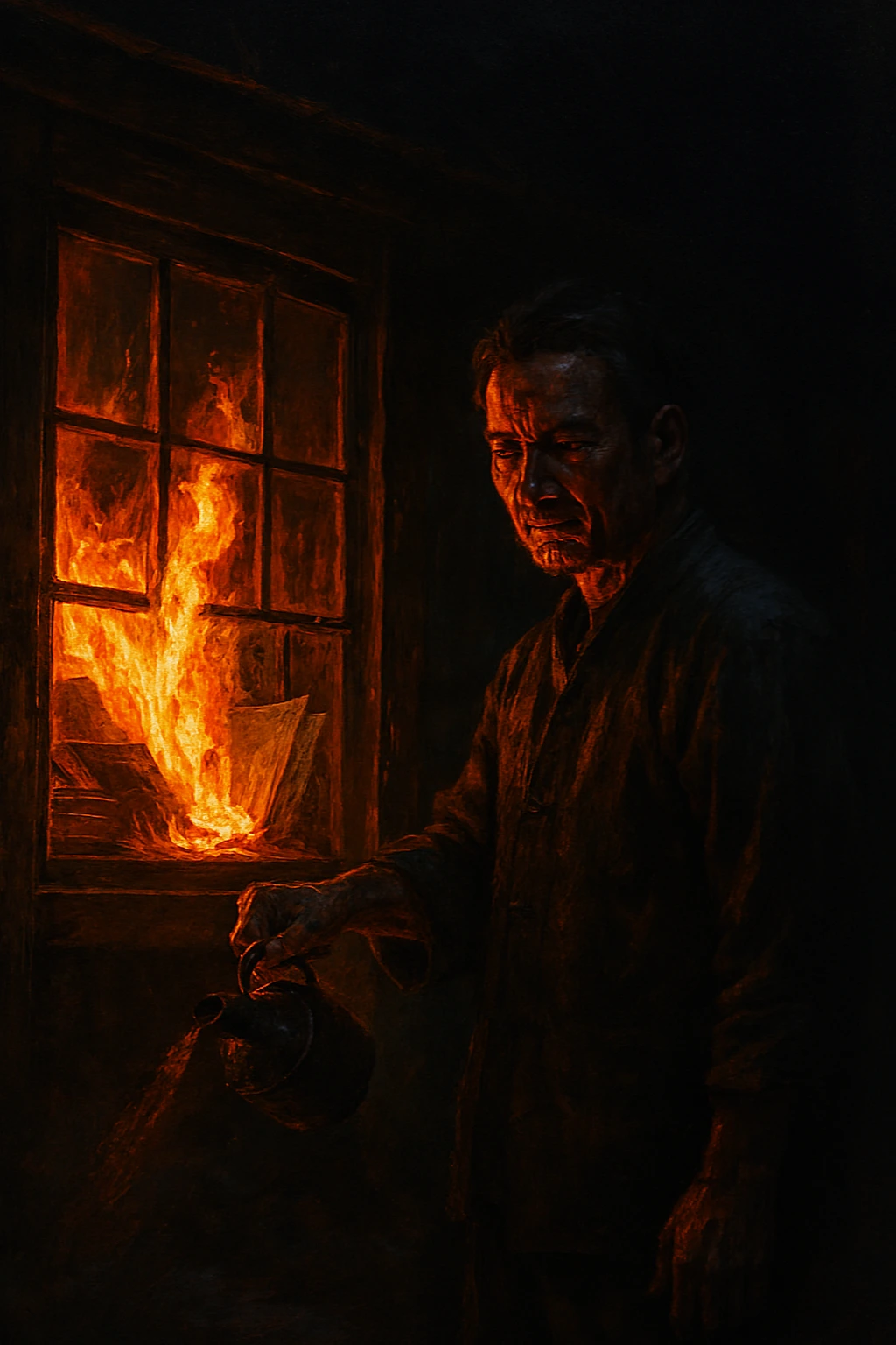 화재 당일 밤, 조병수는 학당에 몰래 잠입했다. 석유를 뿌리고 불을 질렀다. 아이들의 책들이 타고, 한글로 쓰인 교재들이 재가 되는 것을 보며 그는 쾌감을 느꼈다.