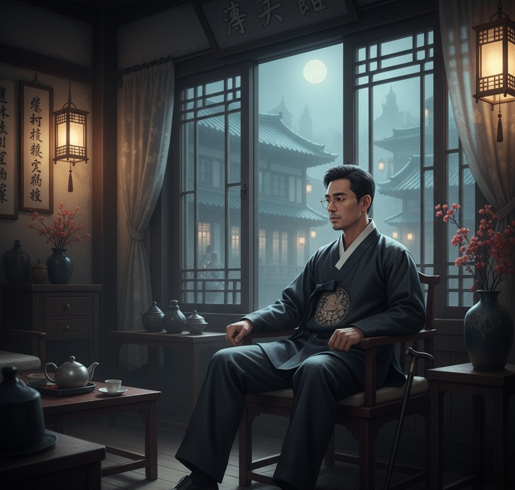 신우혁(申宇赫) 은 2층 귀빈실에 앉아 창밖을 내다보고 있었다. 서른다섯의 나이, 단정한 한복 차림에 금테 안경을 낀 그는 교양 있는 요정 주인처럼 보였다. 하지만 그가 걸을 때마다 오른쪽 다리를 약간 절었다.