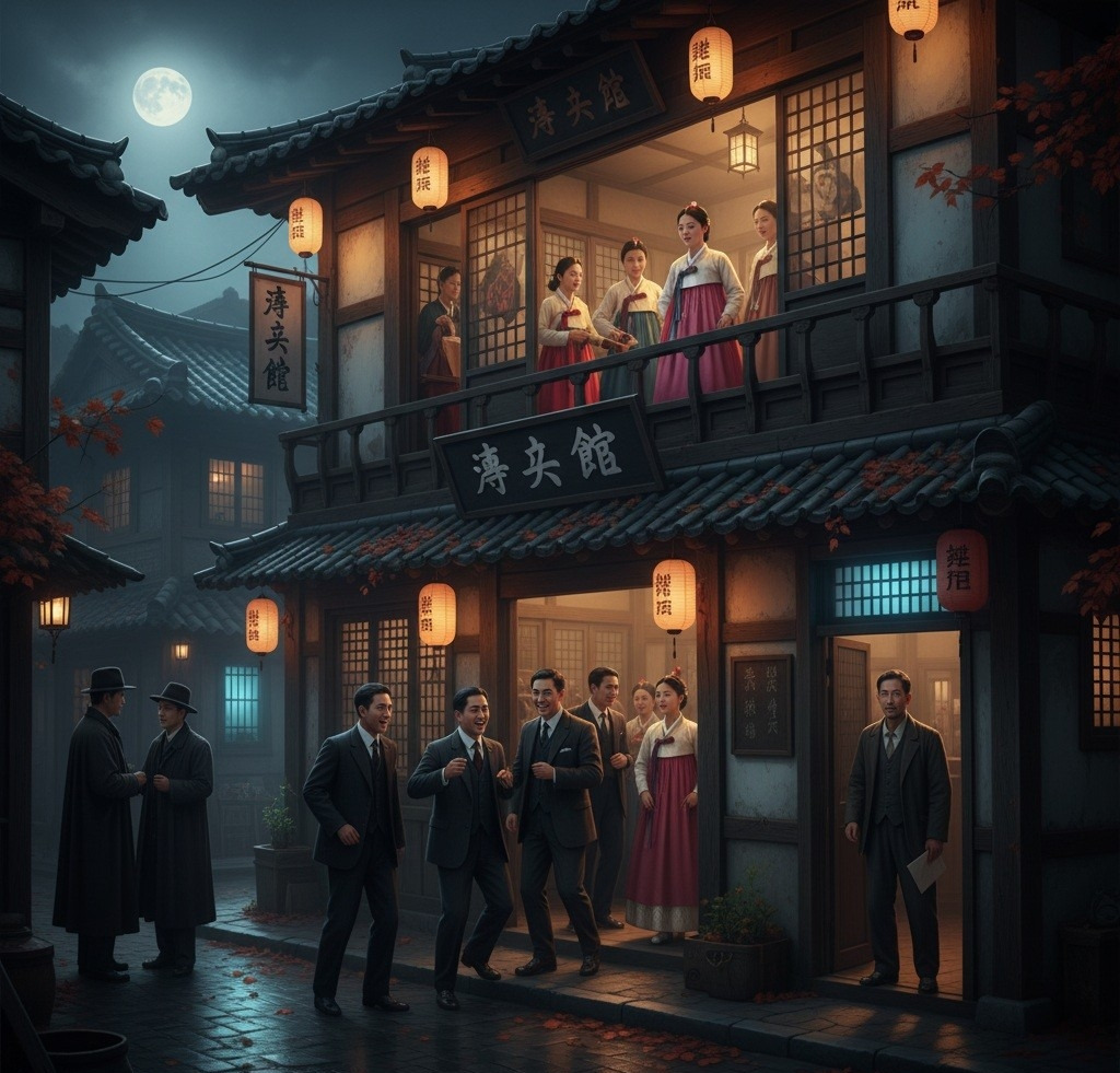 2층 한옥 건물의 진주관은 겉으로는 화려한 요정이었다. 기생들의 노랫소리와 손님들의 웃음소리가 밤마다 흘러나왔다. 하지만 그 이면에는... 다른 세계가 있었다.