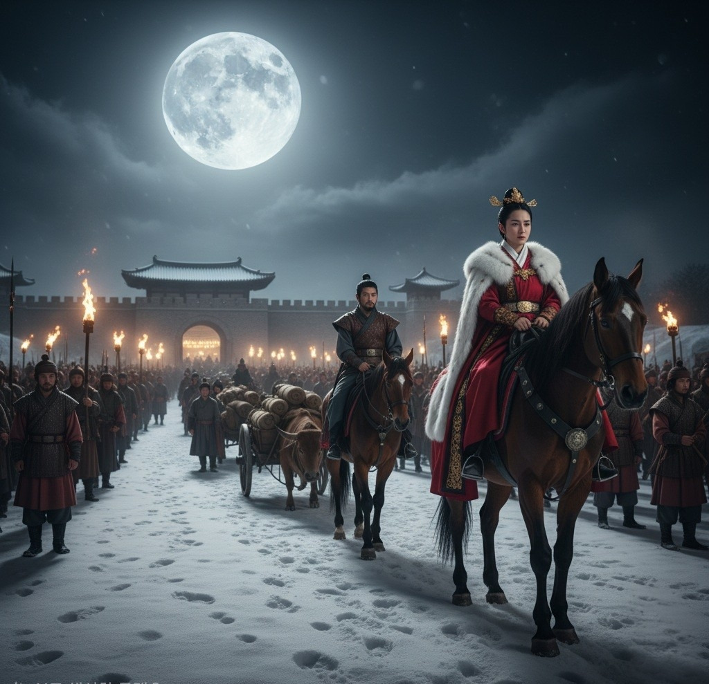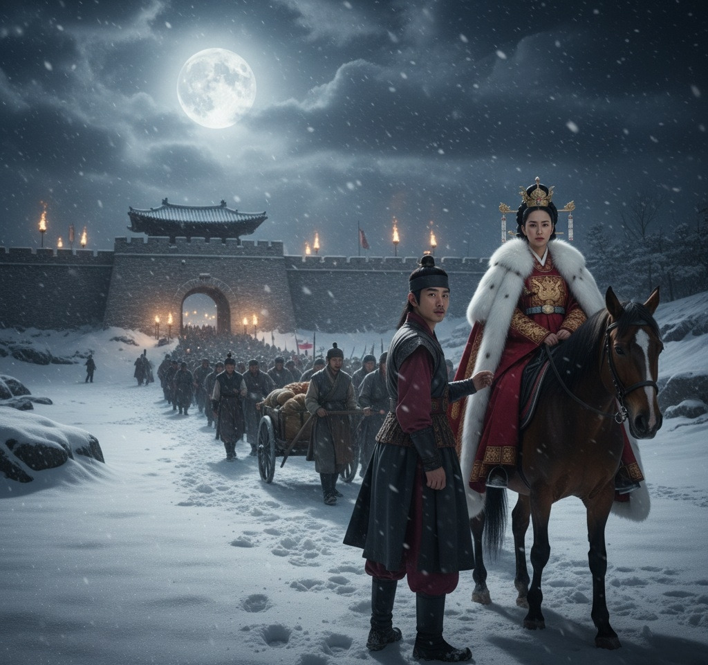 성문을 나서는 순간, 온조는 뒤를 돌아보았다. 졸본성의 불빛이 저 멀리 희미하게 보였다. 그곳에는 자신들이 남겨두고 온 모든 것이 있었다. 추억도, 영광도, 그리고 아버지의 무덤도.