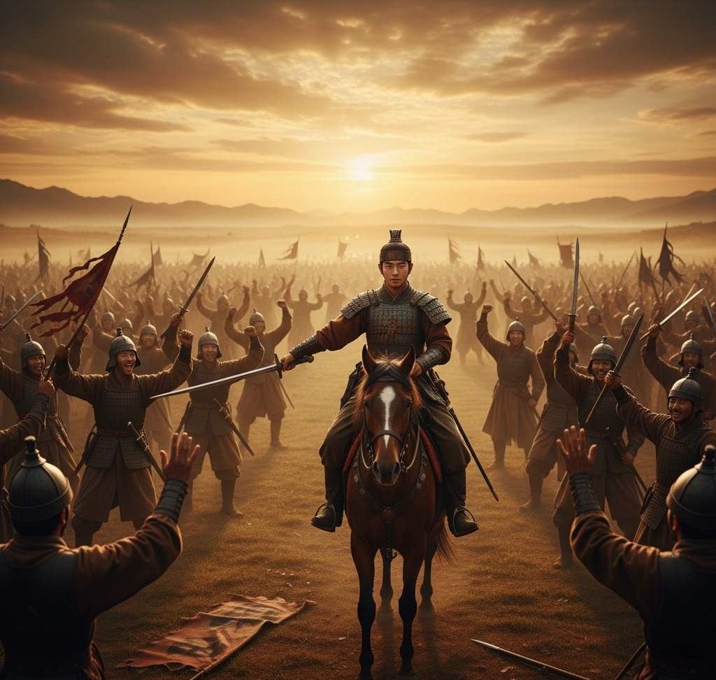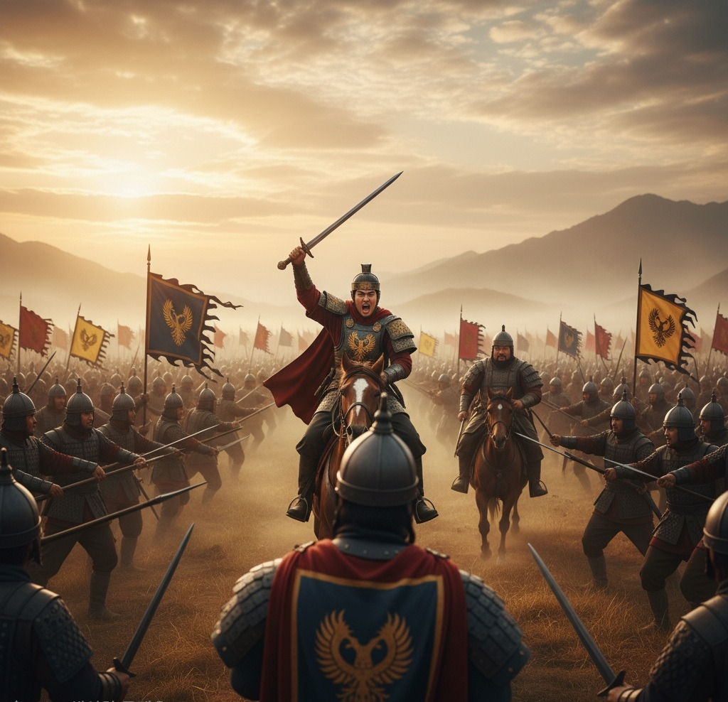 목지국의 장군이 외쳤다. "어린 왕이 직접 나왔구나! 좋다. 오늘 백제를 우리 목지국의 속국으로 만들겠다!"
