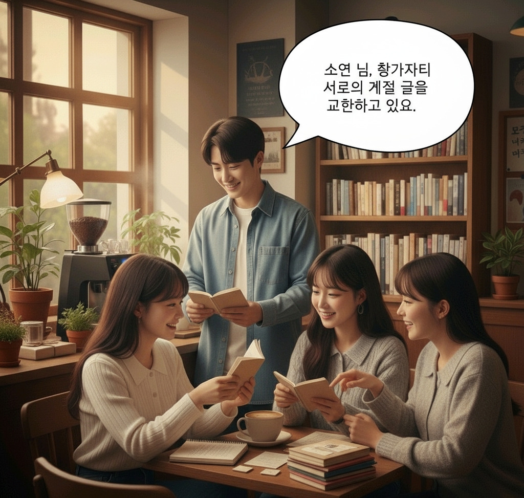 서로의 계절 글을 교환하고 있어요.”
