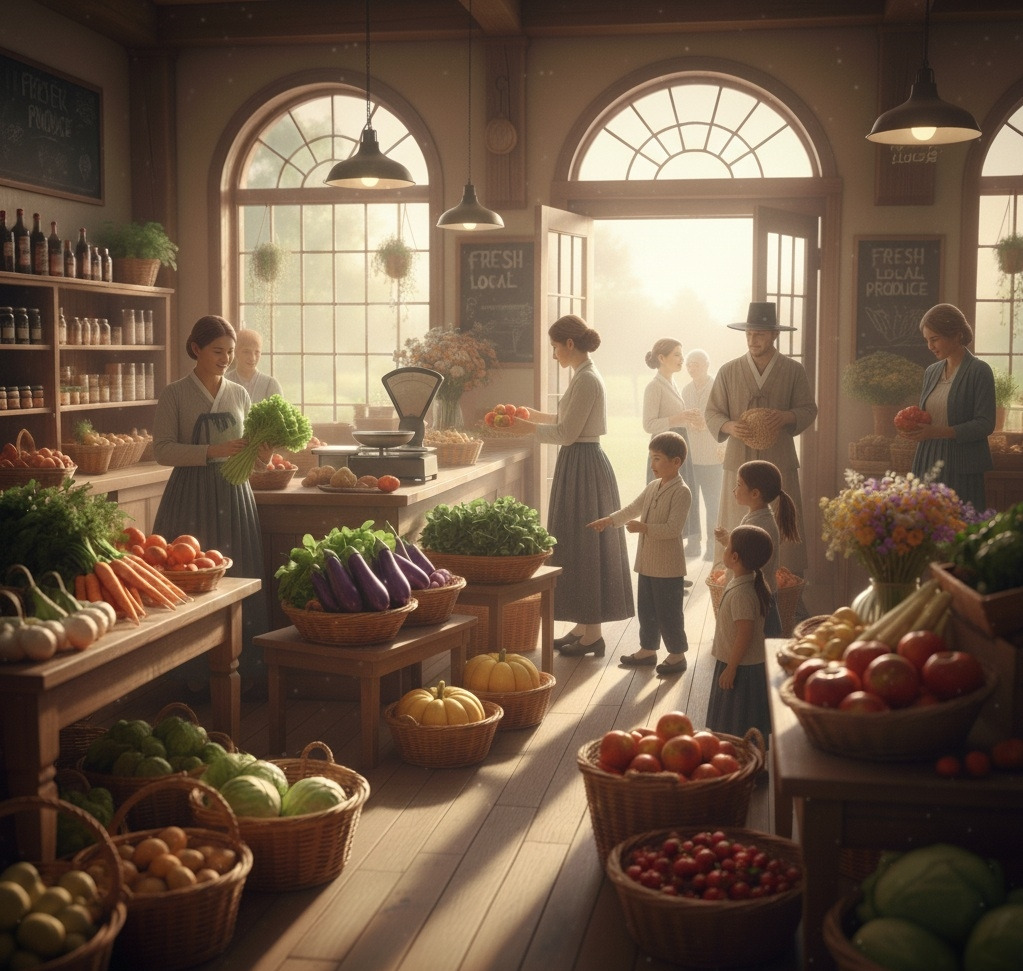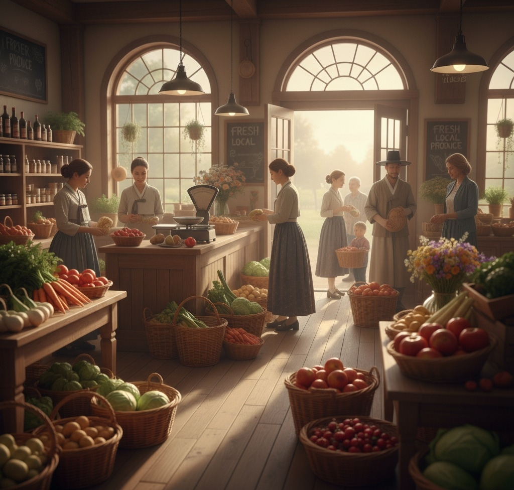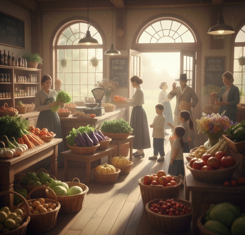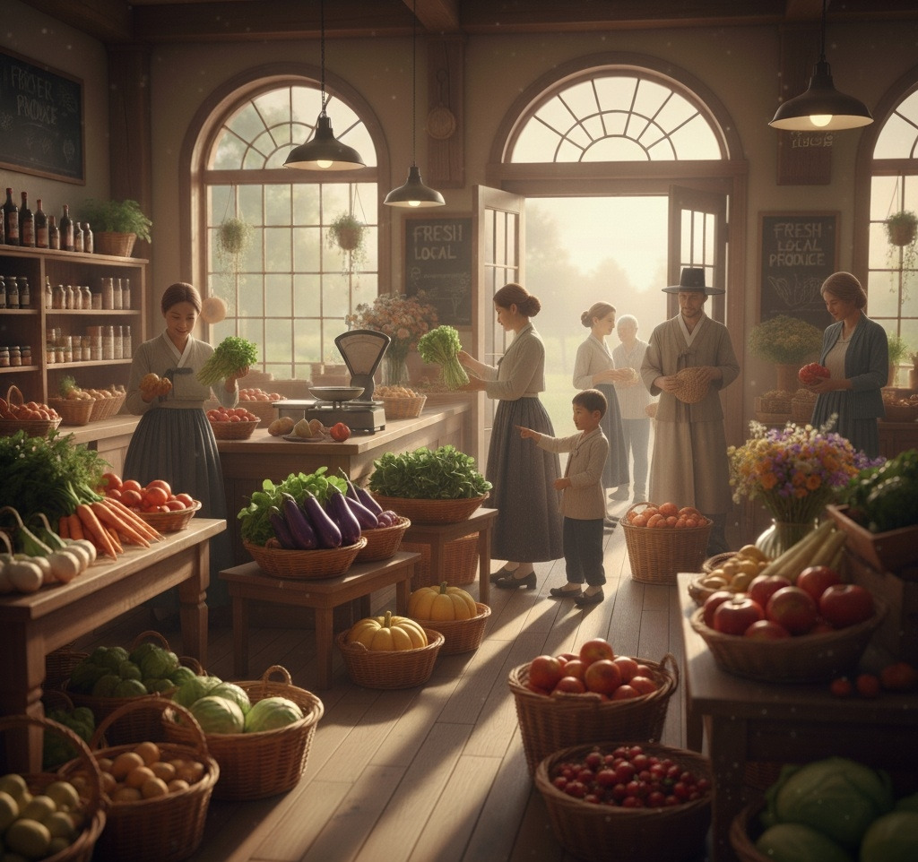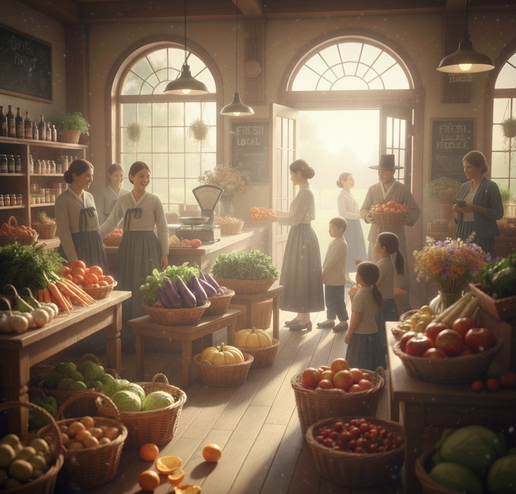 아침 햇살이 조용히 동트기 시작할 무렵, 작은 시골 마을의 중심에 위치한 농산물 상점은 이미 활기로 가득 차 있었다.