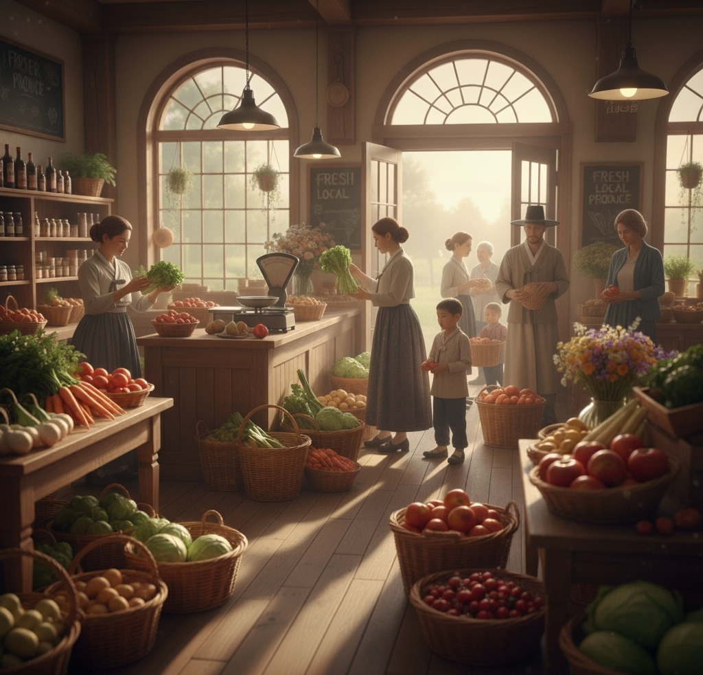상점은 마을 사람들에게는 단순한 장소가 아닌, 하루를 시작하는 작은 축제의 장이었다. 상점의 문을 열고 들어서는 순간, 다양한 채소와 과일이 선보이는 다채로운 색채의 향연이 방문자들을 맞이했다.