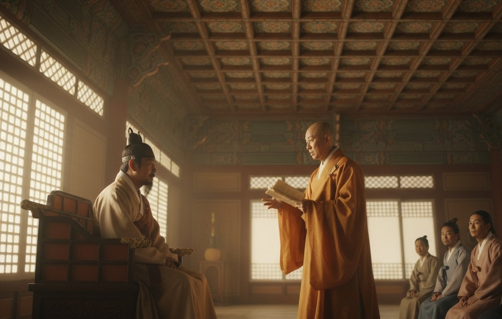 "전하, 불교는 외래 종교입니다. 조상 숭배를 중시하는 우리 전통과 맞지 않습니다."