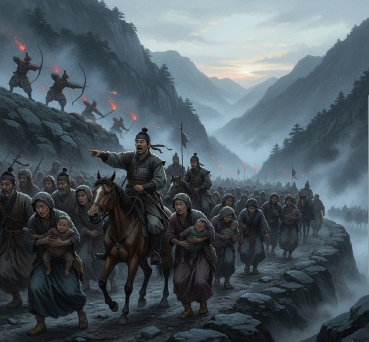 그들은 수천 명의 백성들과 함께 남쪽으로 도망쳤다.