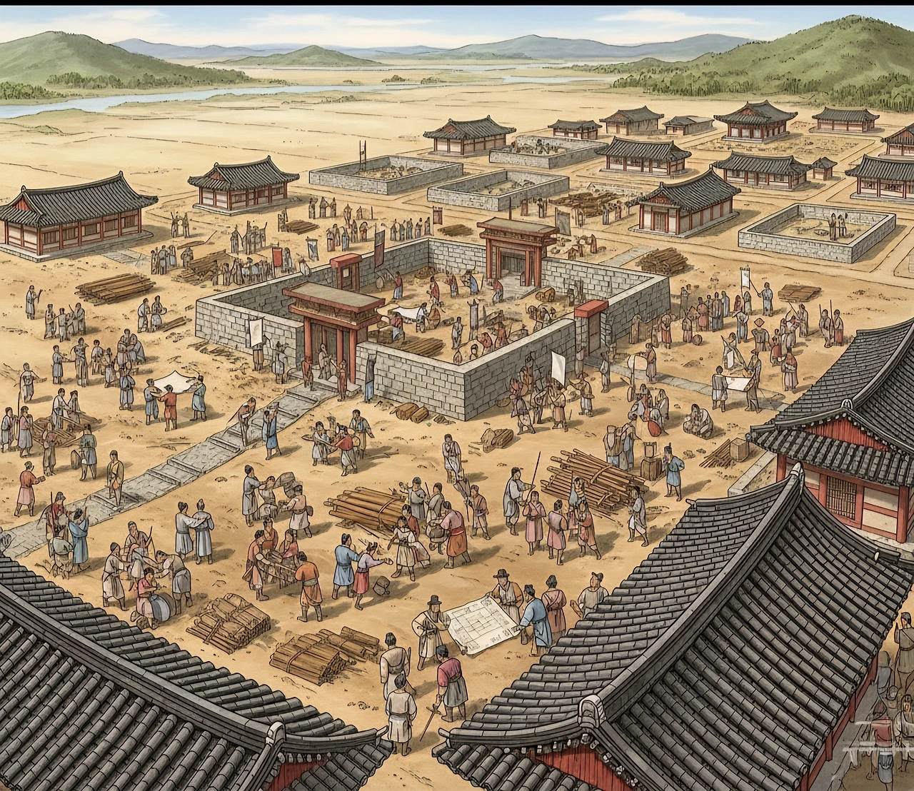 중앙에 왕궁을 짓고, 그 주변에 관청과 귀족 저택을 배치했다. 도로는 격자형으로 정비했다. 중국의 선진 도시 계획을 도입한 것이었다.