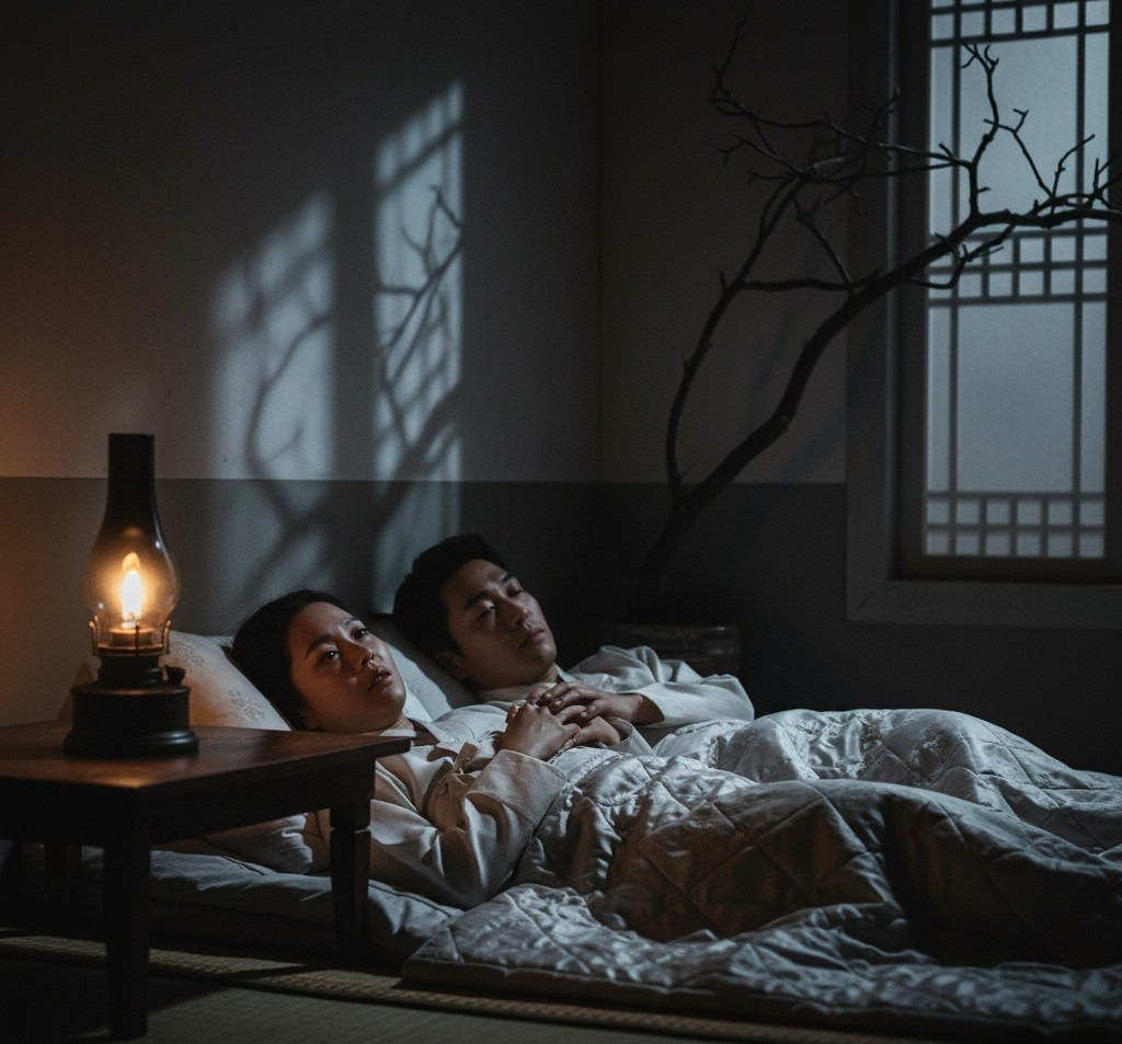 신미영은 잠을 이루지 못하고 있었다. 옆에서 자는 한호건의 얼굴을 보았다.