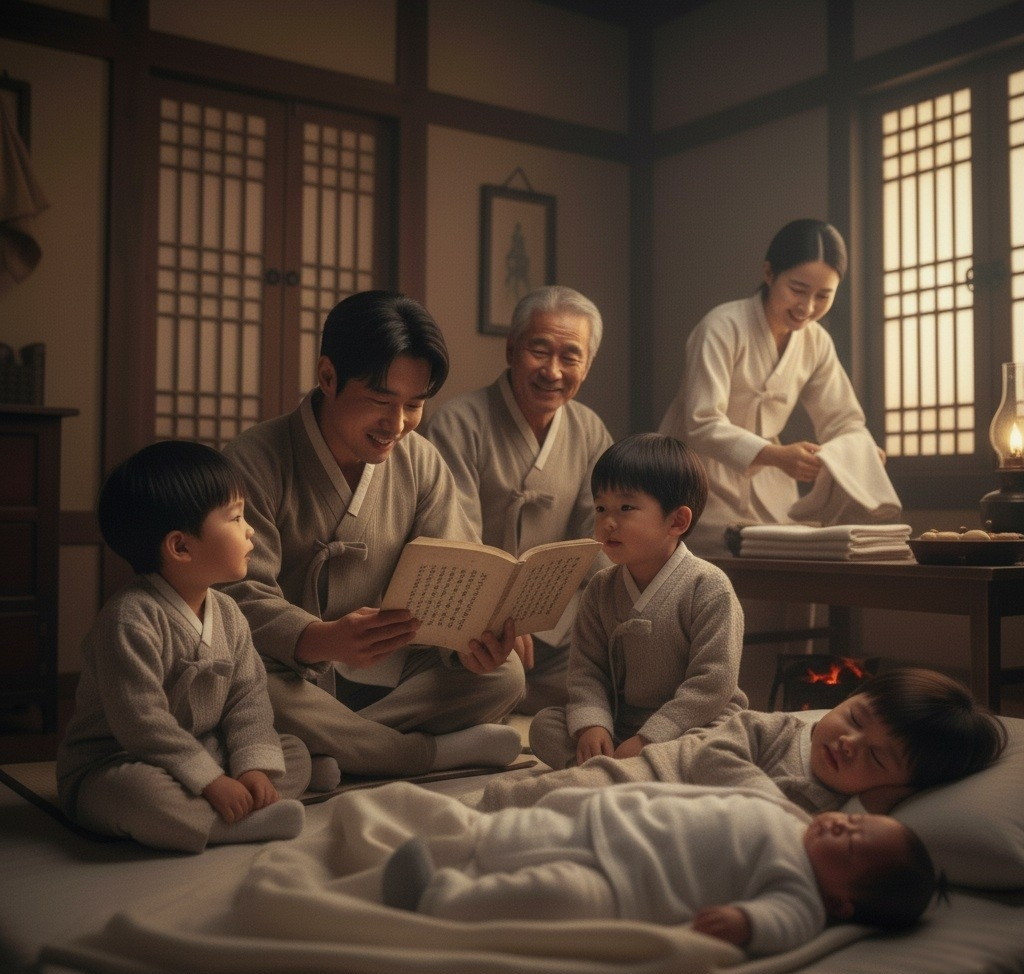 이산갑: (순산이에게) "우리 순산아, 들어봐라. '단군할아버지께서...'"