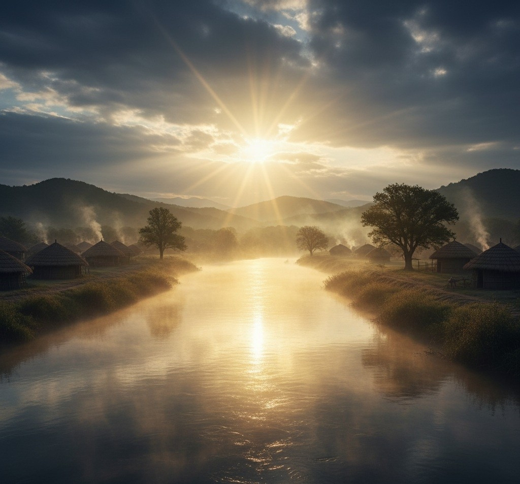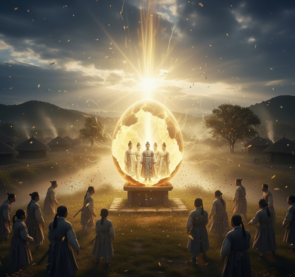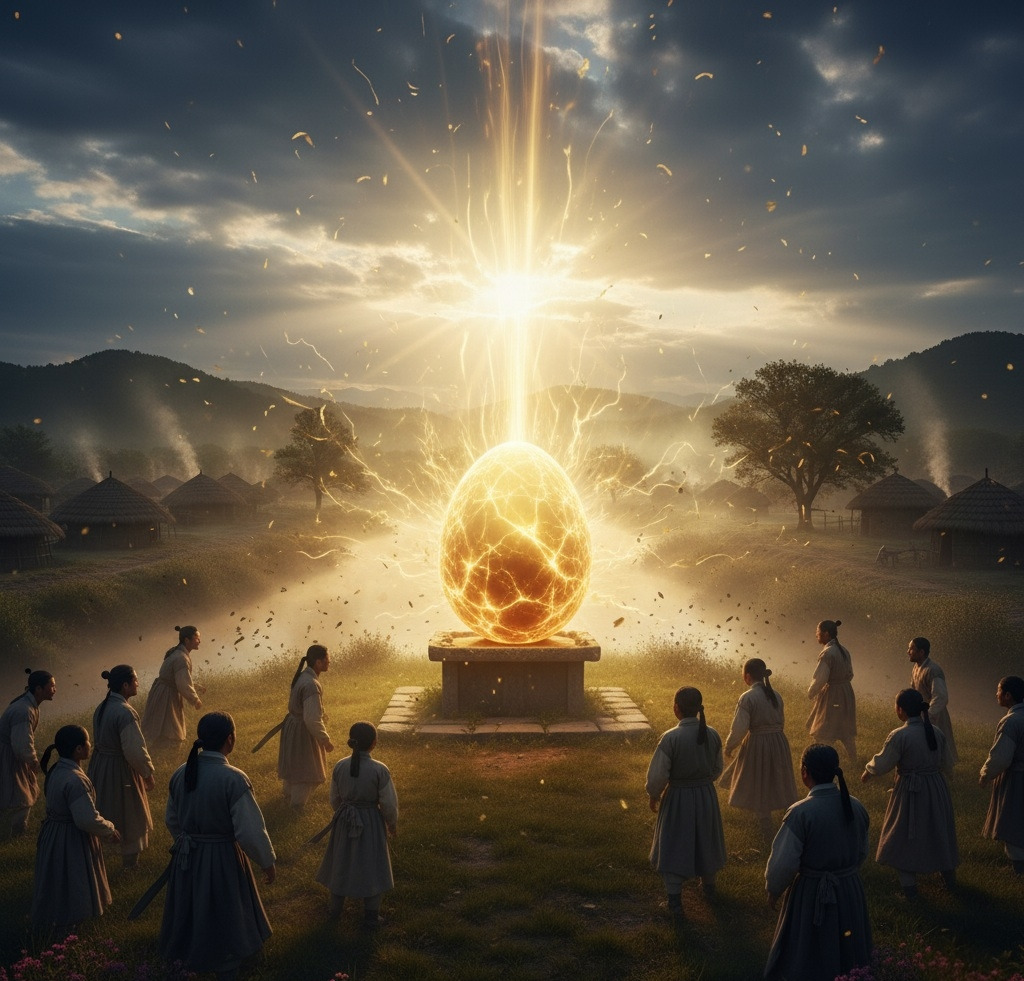 사람들이 외쳤다. 낙동강 언덕에서 황금색 알이 나타났다는 것이었다.