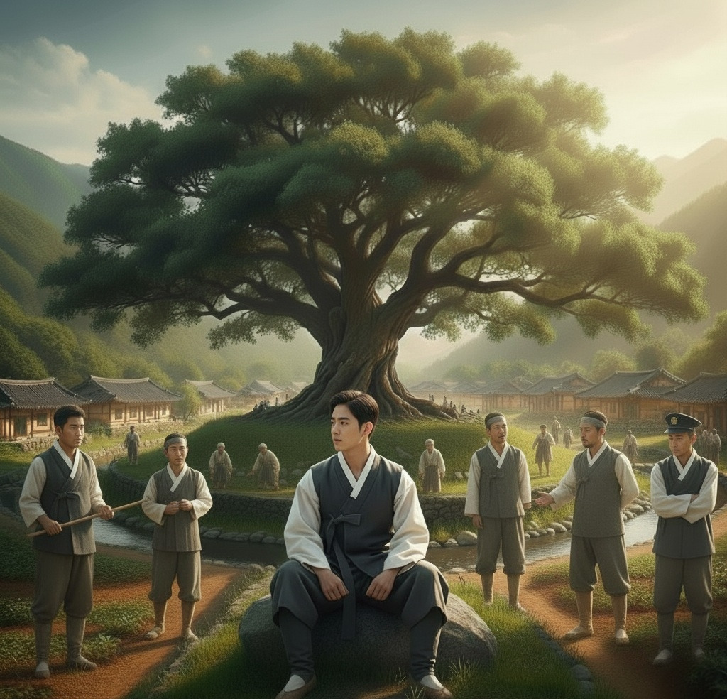 팽나무의 그늘 아래, 넓은 바위통에 몸을 기대고 앉은 이산갑은 오늘도 윗마을의 자신의 경작지를 내려다보며 깊은 생각에 잠겼다. 산감으로서의 삶은 고단했지만, 그만큼 보람찼다.