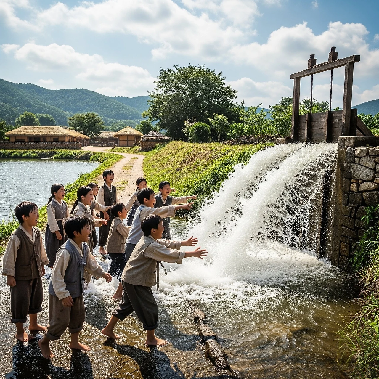 여름에 어릴 적 멱을 감던 저수지 수문 아래로 흐르는 개울을 건너는 순간, 어린 시절의 추억이 물살에 실려 와 그리움을 자극한다.