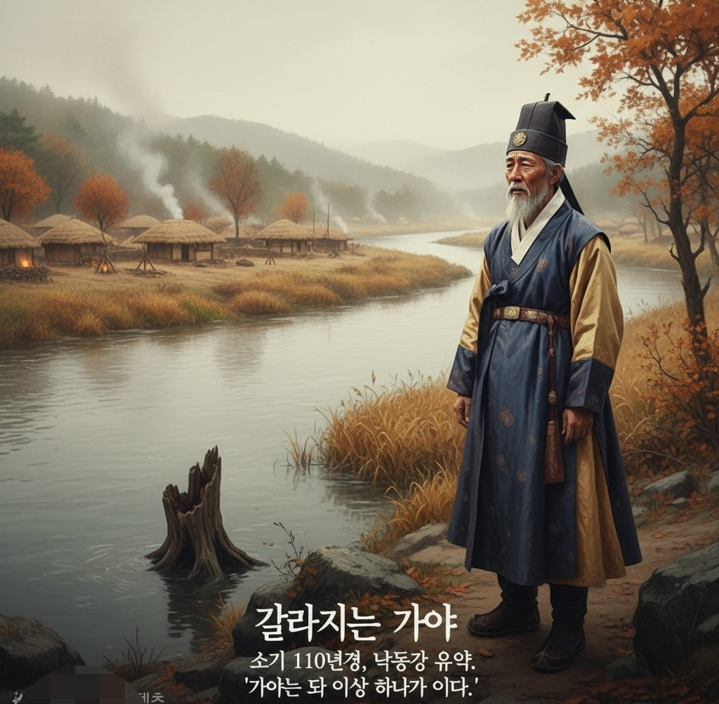 갈라지는 가야 서기 110년경, 낙동강 유역 "가야는 더 이상 하나가 아니다." 한 노인 귀족이 말했다. 그는 수로왕의 5대 손자였다. "할아버지의 할아버지 때는 모두가 하나였다. 하지만 지금은?"