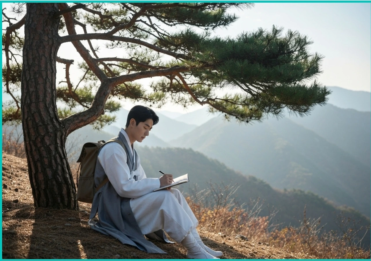 자연의 숨결에 귀를 기울이며, 마음속에 피어오르는 생각들을 조용히 노트에 적어 내려갔다. 그에게 이 모든 순간은 단순한 쉼이 아니라, 과거와 현재, 그리고 미래를 잇는 조용하고도 깊은 다리임을 느끼게 했다.