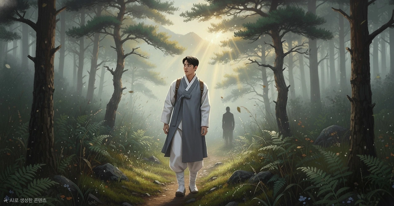 이산갑이 빙그레 웃으며 산길을 다시 걷기 시작했다. 두 사내의 발걸음은 어느새 한결 가벼워진 듯, 안갯속으로 흩어져 갔다.