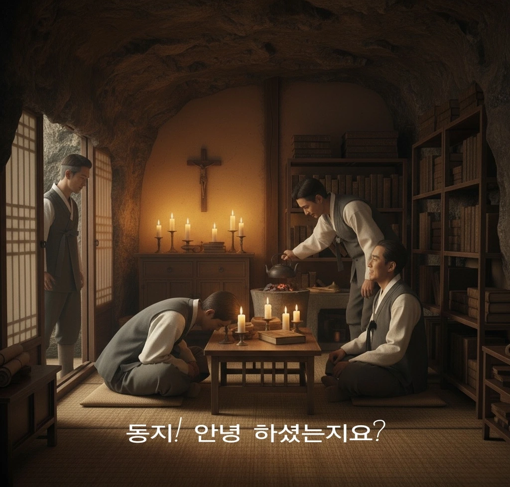 "동지! 문안 인사드립니다 " 하며 두 사람은 넙죽 엎드려 이산갑에게 큰절을 올렸다.