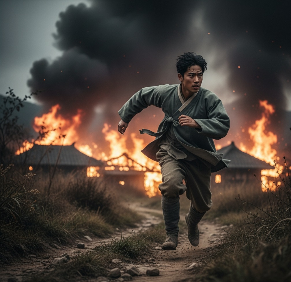 그는 더 이상 머뭇거릴 수 없었다. 온몸을 쥐어짜듯 힘을 모아 발길을 재촉했다. 풀숲을 헤치고, 돌길을 내리달리며, 그저 한 걸음이라도 빨리 마을로 닿기 위해 달리고 또 달렸다. 머릿속엔 한 가지 생각만이 떠올랐다. 무사해야 한다. 제발 모두 무사해야 한다.이산갑은 발길을 재촉하며 마을을 향해 달리기 시작했다.