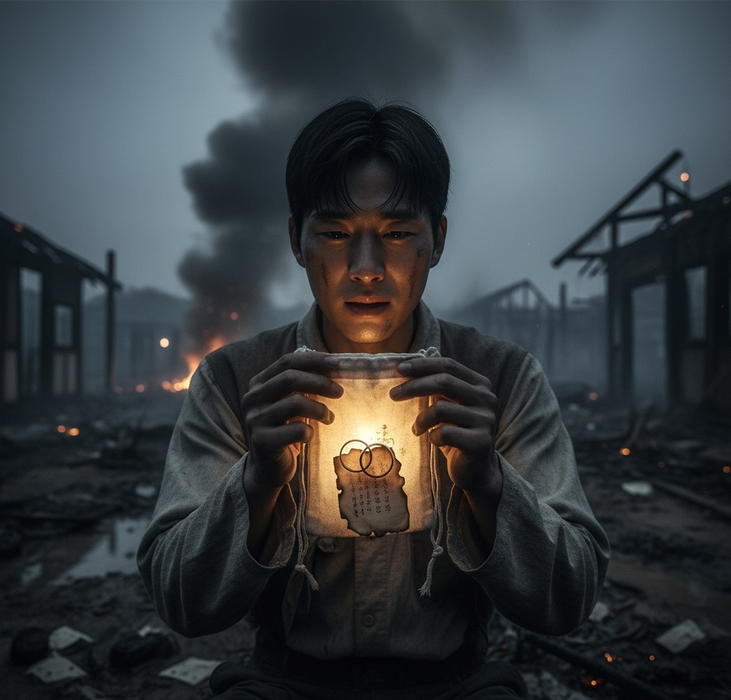그 안에는 그날 윤서영과 함께 묻었던 서약문,그리고 서로를 기억하자며 끼워두었던 한 쌍의 반지가 조심스럽게 드러났다.반지는 그을음에 얼룩졌지만, 그 안에 담긴 기억은 너무도 선명했다.그날의 따스한 햇살, 윤서영의 해맑은 웃음, 그리고 손을 맞잡고 함께 내뱉었던 약속이산갑의 손이 떨렸다. 그는 반지를 쥔 손을 가슴에 대고 한참 동안 눈을 감았다