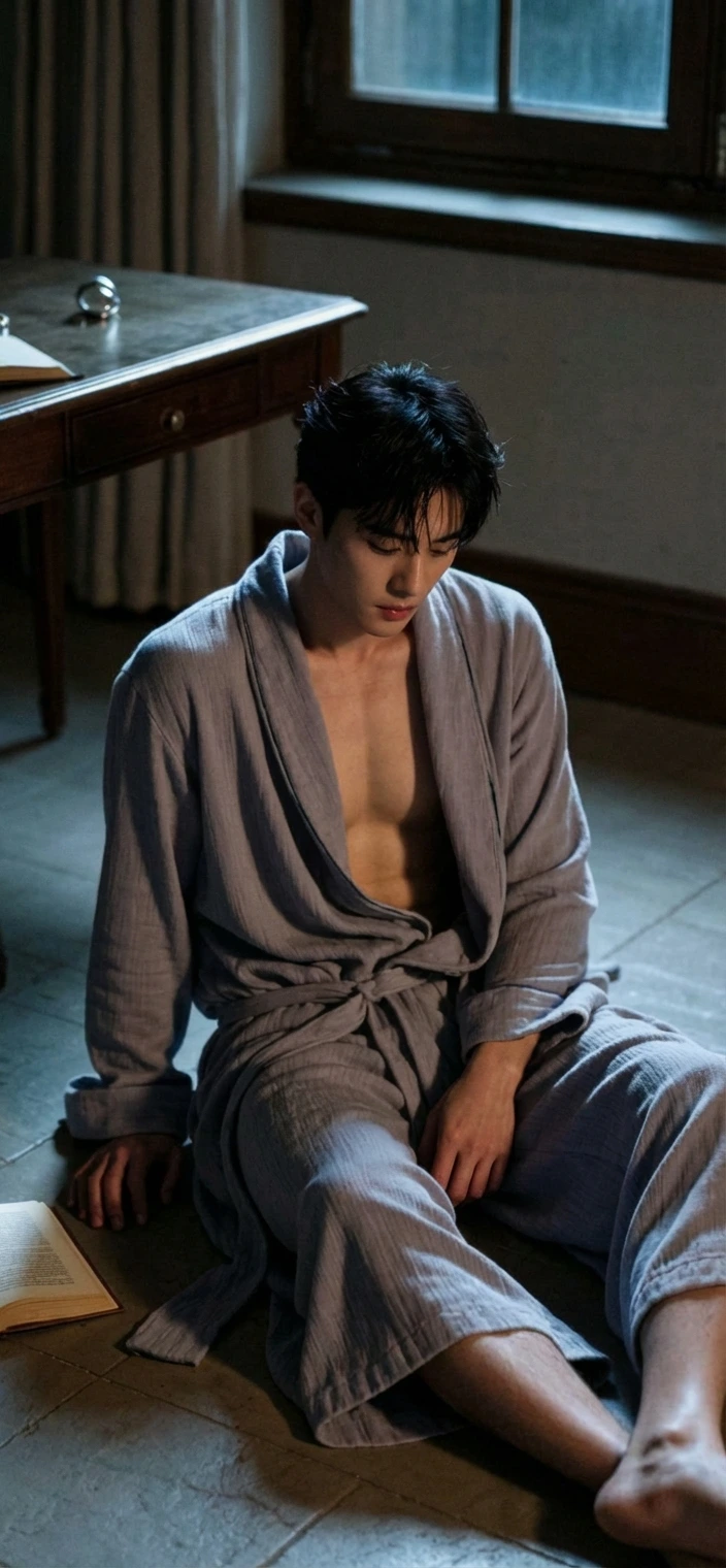 그는 책상 앞에 조용히 앉았다. 달빛이 반지와 그의 눈동자 사이에서 떨리고 있었다. 아무 말 없이, 한참을 그렇게 앉아 있었다.