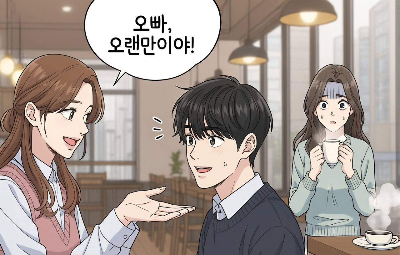 집으로 돌아가는 길, 그녀는 자꾸만 카페의 그 순간을 떠올렸다. 지은이라는 이름, 준혁의 편안한 미소, 그리고 '오빠'라는 호칭에 순간적으로 굳어버렸던 자신의 모습.
