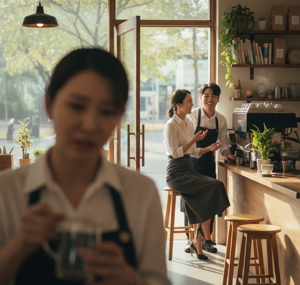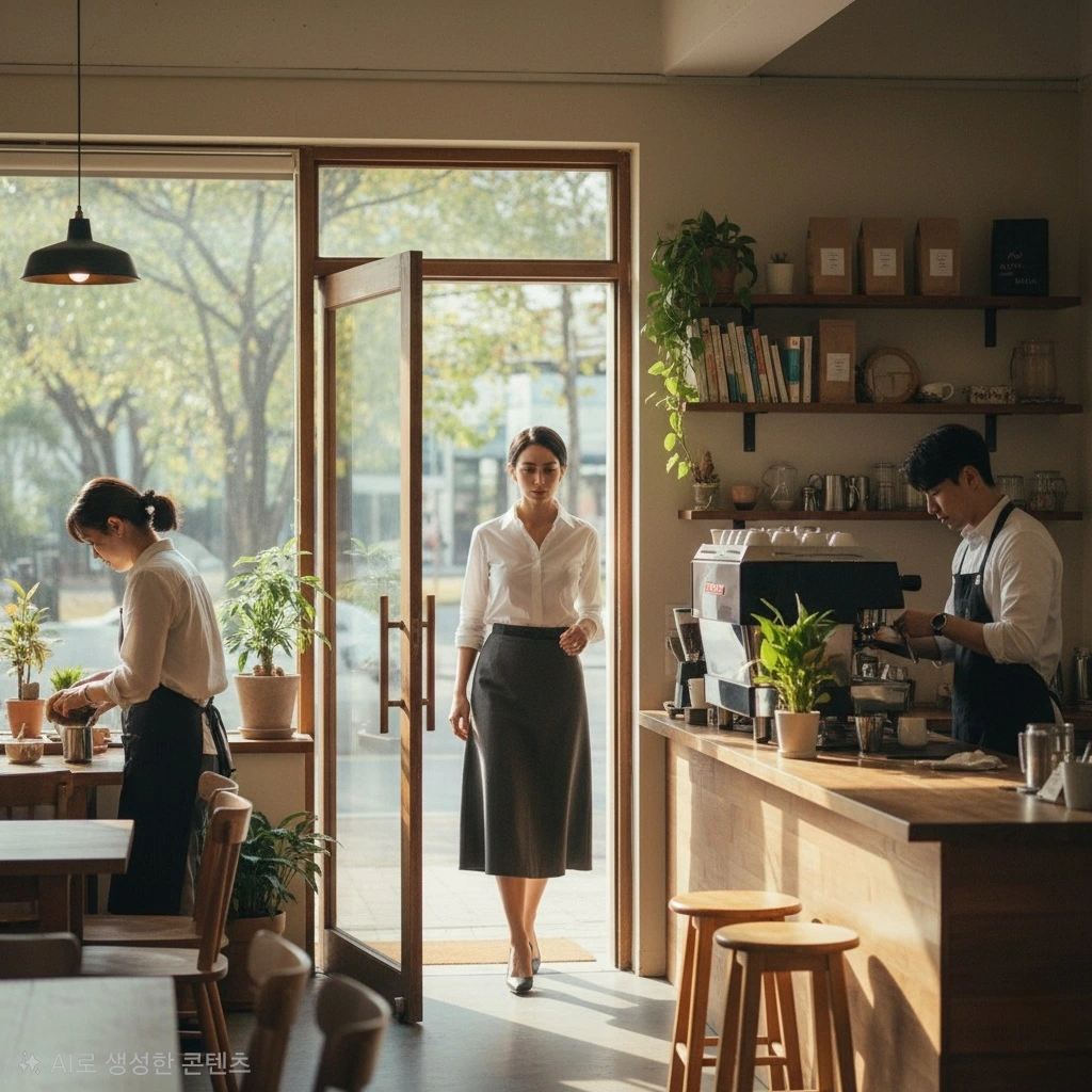 나는 창가 자리에서 컵을 닦고 있었고, 준혁은 평소처럼 커피를 내리고 있었다.