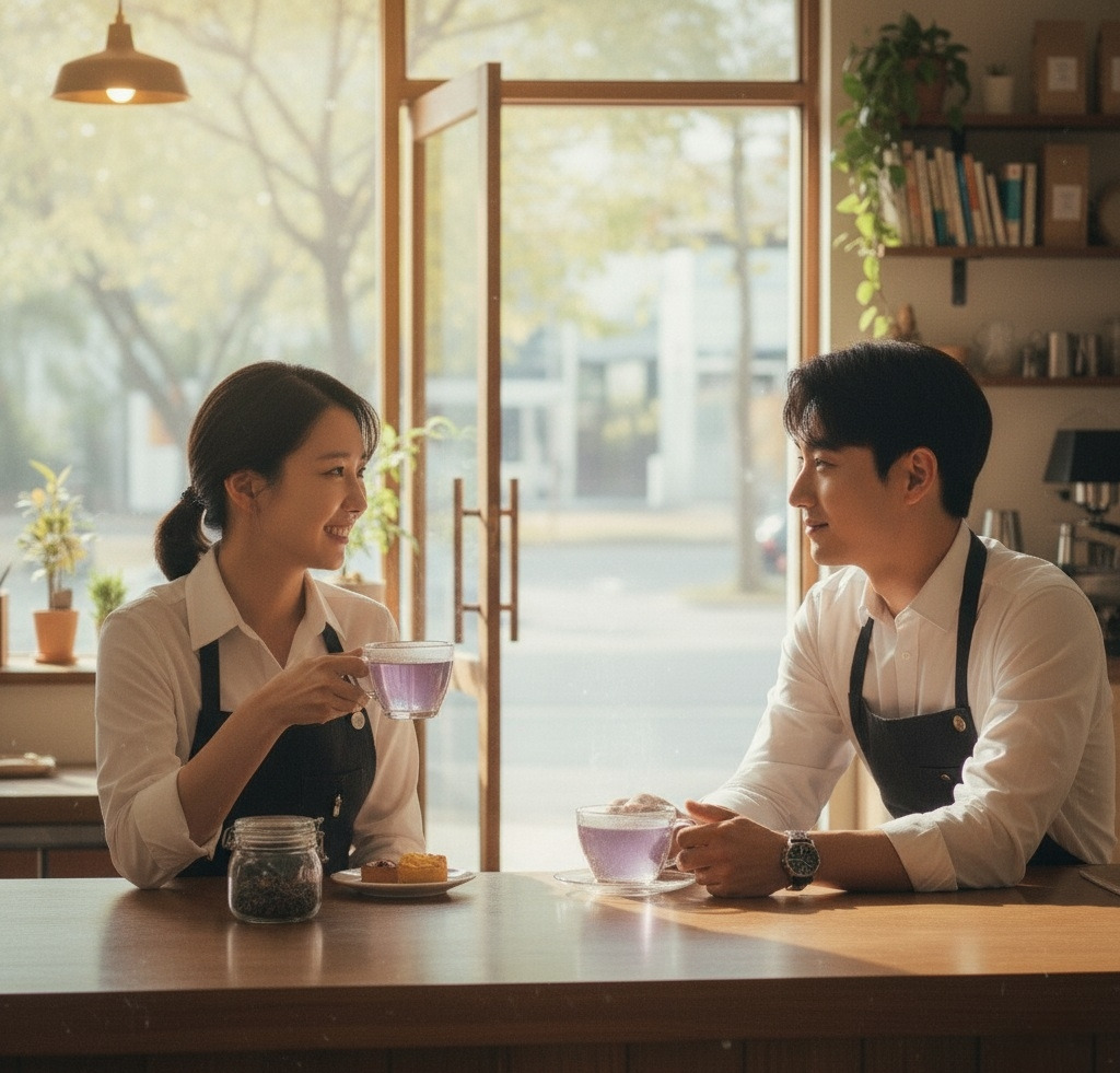 라벤더 향이 은은하게 퍼지는 카페 안, 두 사람 사이의 공기가 달라지고 있었다.