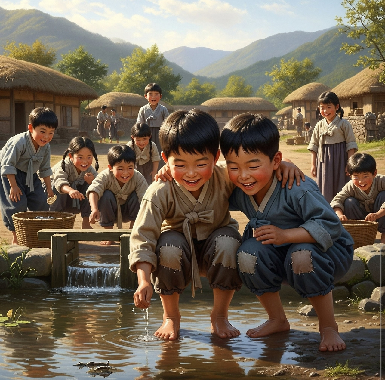 산갑이의 비명소리가 빗소리에 묻혔다.불어난 물살이 산갑이를 순식간에 휩쓸어가기 시작했다. 산갑이는 필사적으로 물 위로 고개를 내밀며 소리쳤다."정치야! 정치야! 도와줘!"산갑이가 정치를 향해 필사적으로 손을 내밀었다. 정치는 산갑이의 절망적인 외침을 듣고 잠깐 그 쪽을 바라보았다.하지만 거센 물살과 쏟아지는 빗줄기를 보자, 정치는 순간 공포에 사로잡혔다. 만약 자신이 산갑이를 도우려다가 함께 물에 휩쓸려간다면..."정치야! 제발!" 산갑이의 목소리가 점점 멀어져갔다.정치는 잠깐 망설였다. 그러나 무서움이 앞섰다. 그는 산갑이가 내미는 손을 외면하고, 급히 몸을 돌려 물가에서 뛰쳐나왔다."아, 안돼! 무서워!" 정치는 두려움에 떨며 혼자서만 안전한 곳으로 도망쳤다.산갑이는 친구가 자신을 버리고 도망가는 것을 보며 절망했다. 차가운 물이 코와 입으로 들어왔다. 물살에 휩쓸리면서 산갑이는 간신히 지나가는 나뭇가지를 붙잡을 수 있었다."도와주세요! 누구든지 도와주세요!" 산갑이의 외침이 빗소리 속에서 울려 퍼졌다.다행히 마을 어른 한 분이 급히 달려와 긴 막대기를 내밀어 산갑이를 구해낼 수 있었다. 산갑이는 물에서 나와 땅에 엎드려 기침을 하며 물을 토해냈다."괜찮니? 다친 곳은 없니?" 어른이 걱정스럽게 물었다.산갑이는 고개를 들어 주위를 둘러보았다. 하지만 정치의 모습은 어디에도 보이지 않았다. 그제야 정치가 자신을 버리고 혼자 도망갔다는 현실을 깨달았다.산갑이의 가슴 속에는 차가운 빗물보다 더 차가운 무언가가 스며들었다. 그것은 배신감이었고, 실망감이었으며, 깊은 상처였다.