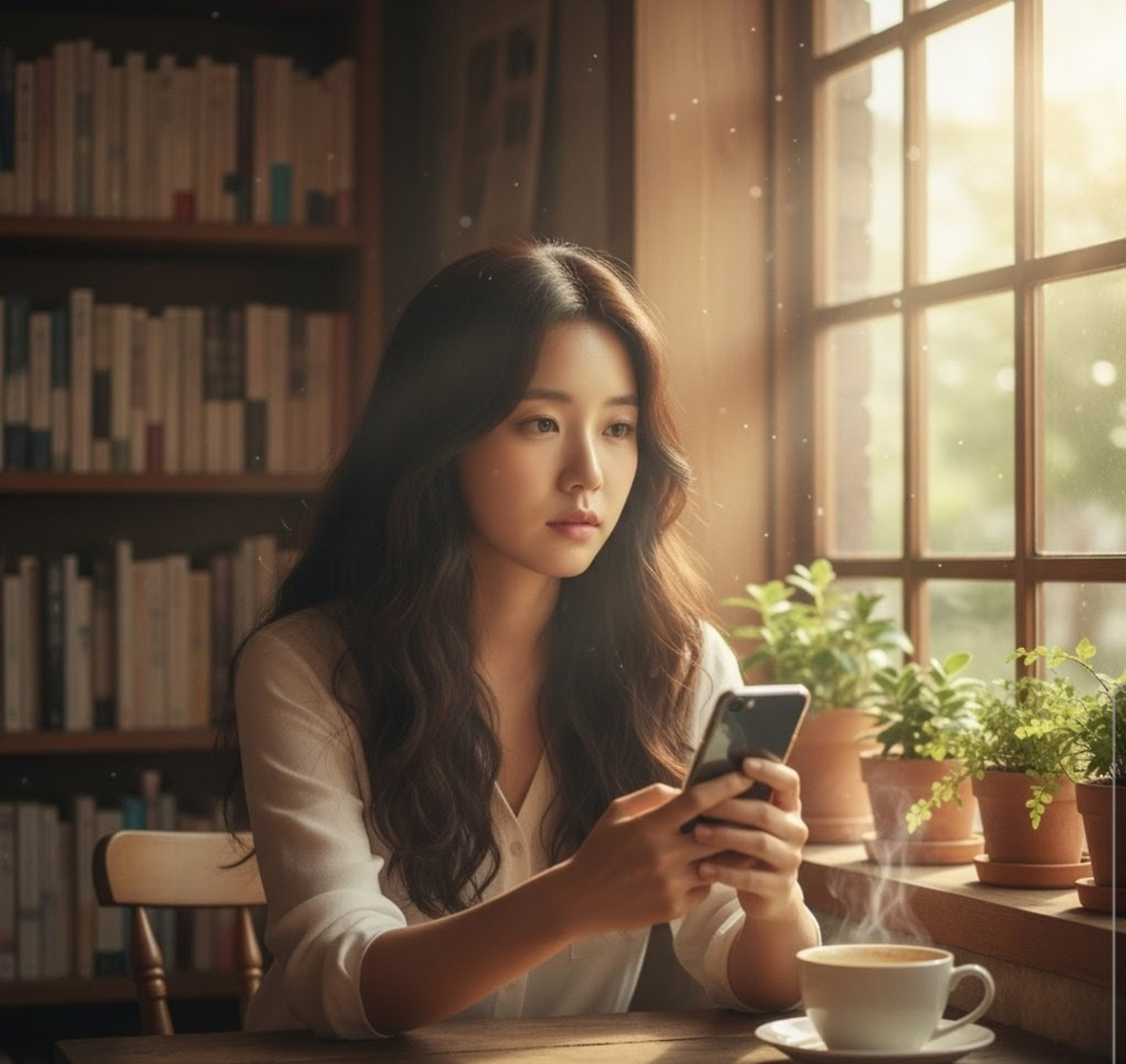 손님이 떠난 뒤, 소연은 창가에 앉아 조용히 숨을 골랐다.