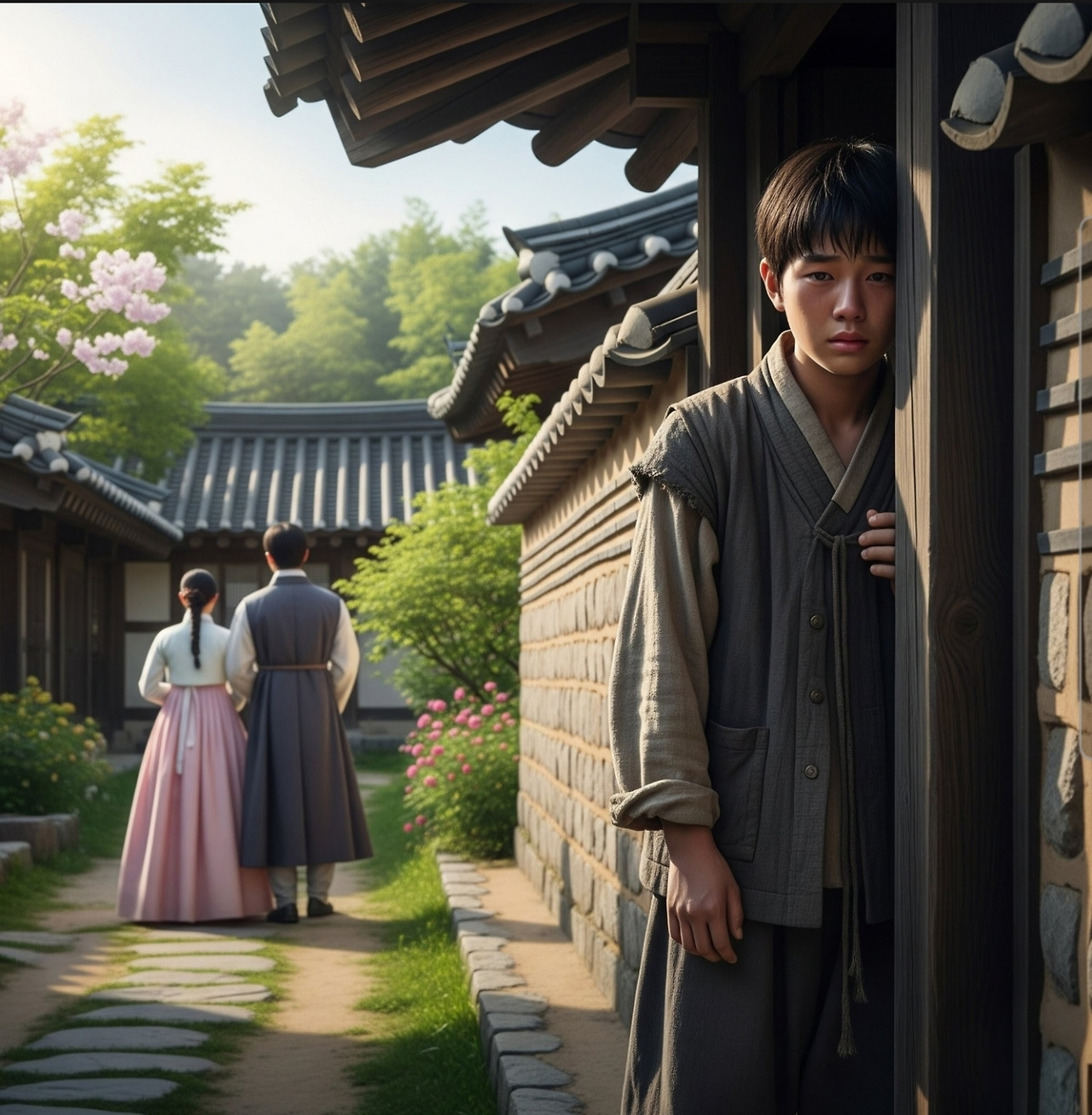 "죄송합니다, 도련님." 정치가 작은 목소리로 말하고는 그 자리를 떠났다. 서영은 정치의 뒷모습을 안쓰럽게 바라보았다. 그의 순수한 마음을 알 수 있었기에 더욱 마음이 아팠다. "산갑 도련님, 너무 하신 것 아니에요? 그분은 그저 친절을 베푼 것뿐인데..." 서영이 조심스럽게 말했다. 산갑이는 자신의 질투심을 드러낸 것을 후회했다.
