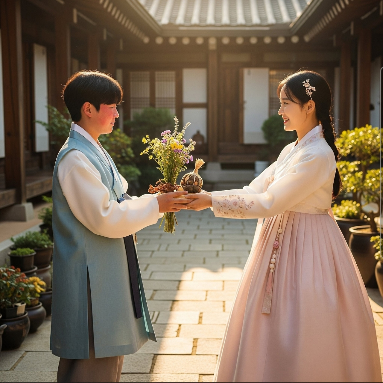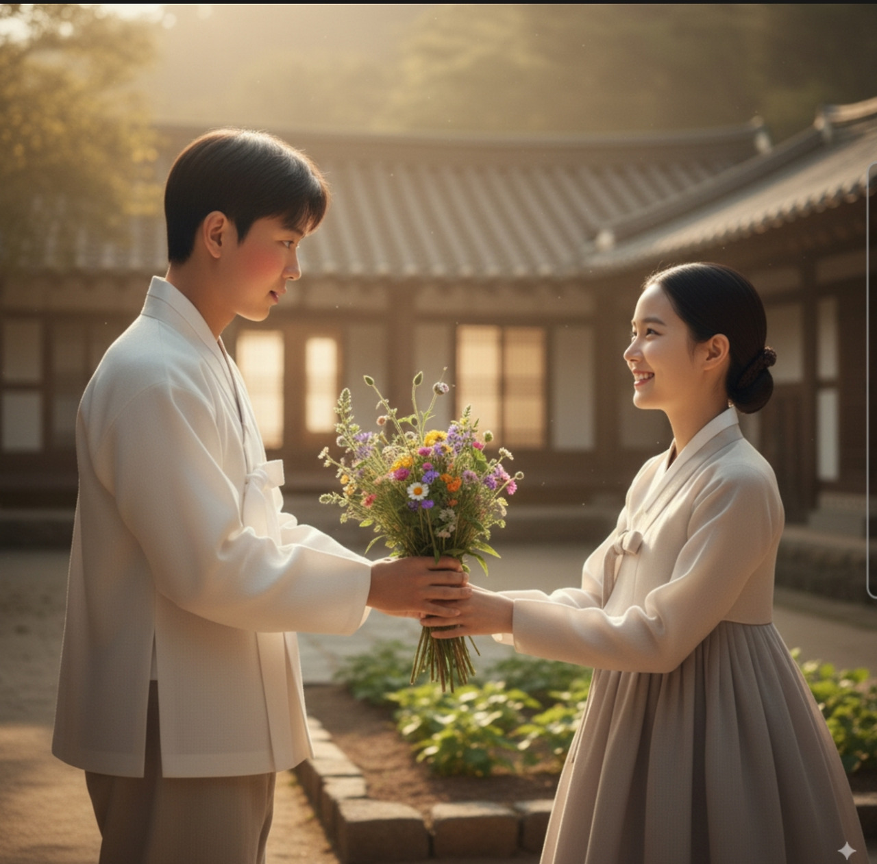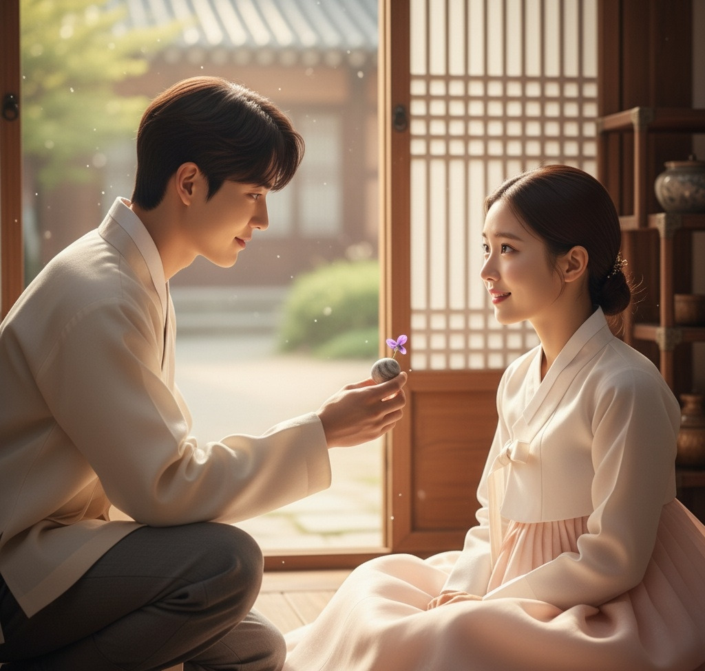"고맙습니다, 이산갑 도련님." 서영이 환한 미소를 지으며 말했다. 그 미소를 본 순간, 이산갑의 가슴이 크게 뛰었다. 이것이 바로 사랑이라는 감정인 것일까? 그는 자신도 모르게 얼굴이 붉어지는 것을 느꼈다.