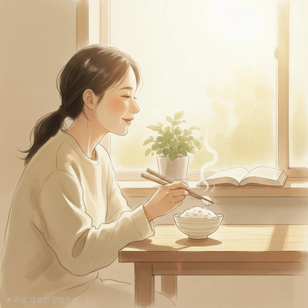 새벽빛이 식탁 위로 스며든다.따뜻한 밥 한 공기, 김이 피어오르며오늘의 고요를 깨운다.