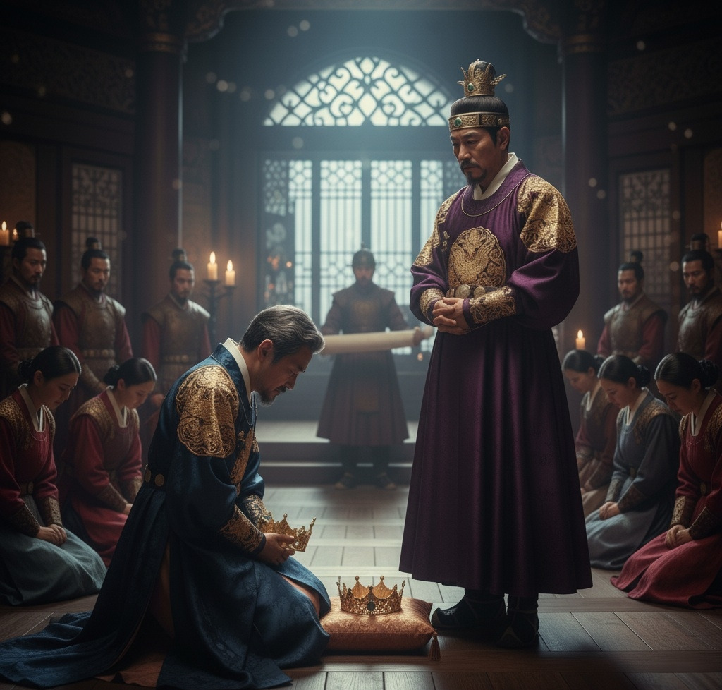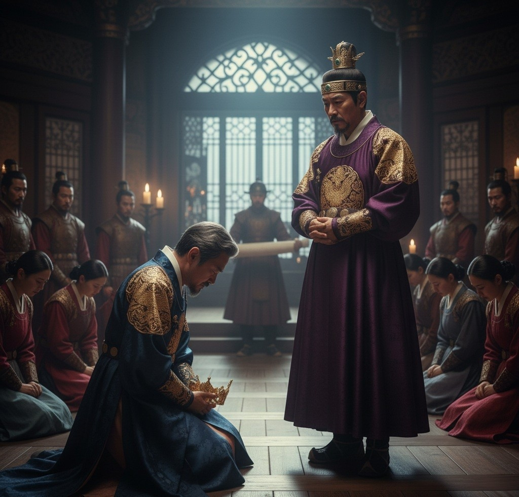"전하, 싸워야 합니다! 우리는 수로왕의 후손들입니다. 굴욕적으로 항복할 수 없습니다!"