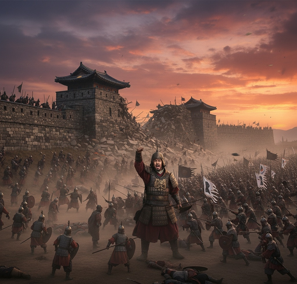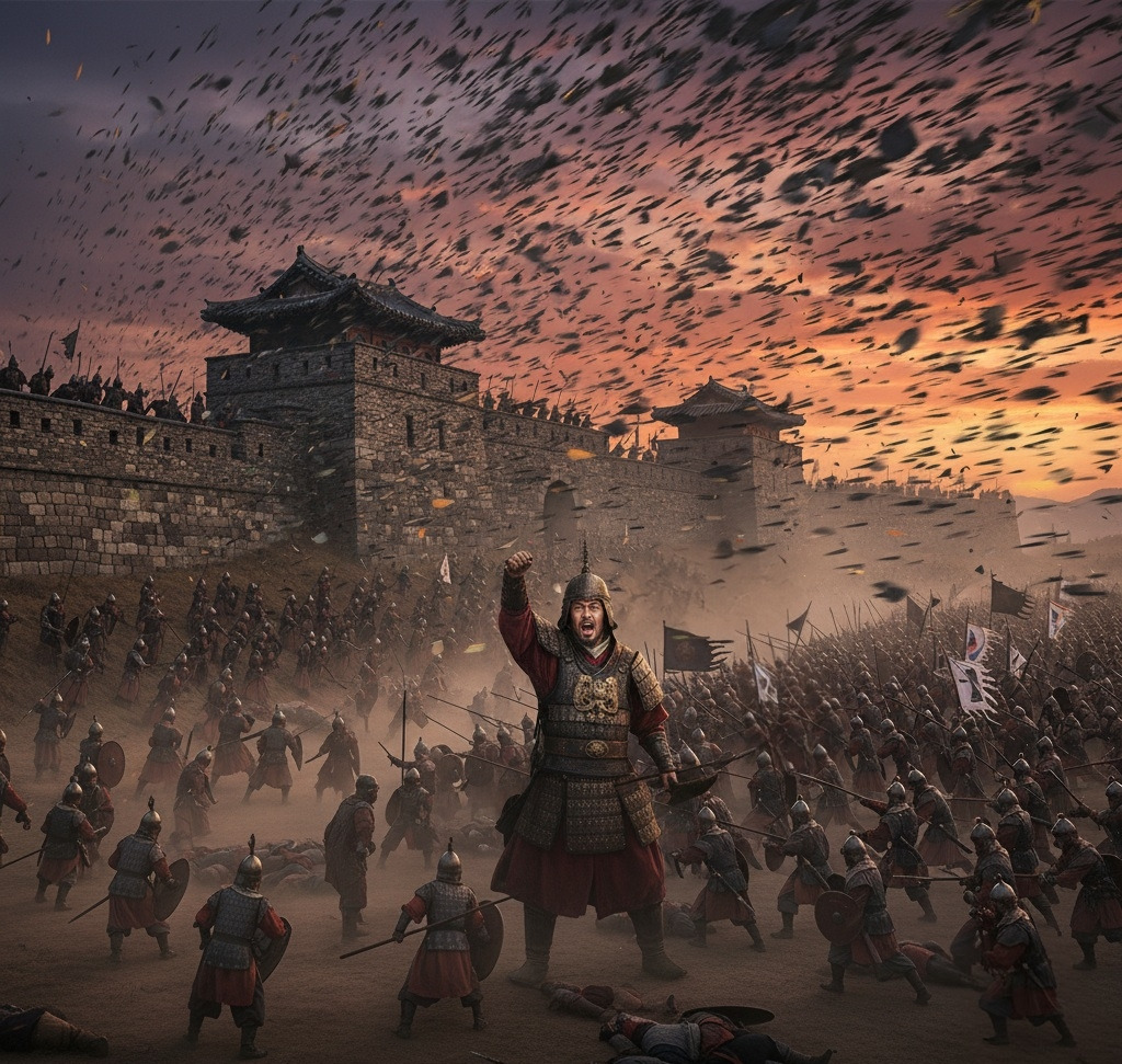 신라군이 성을 공격했다. 화살이 비처럼 쏟아졌다.