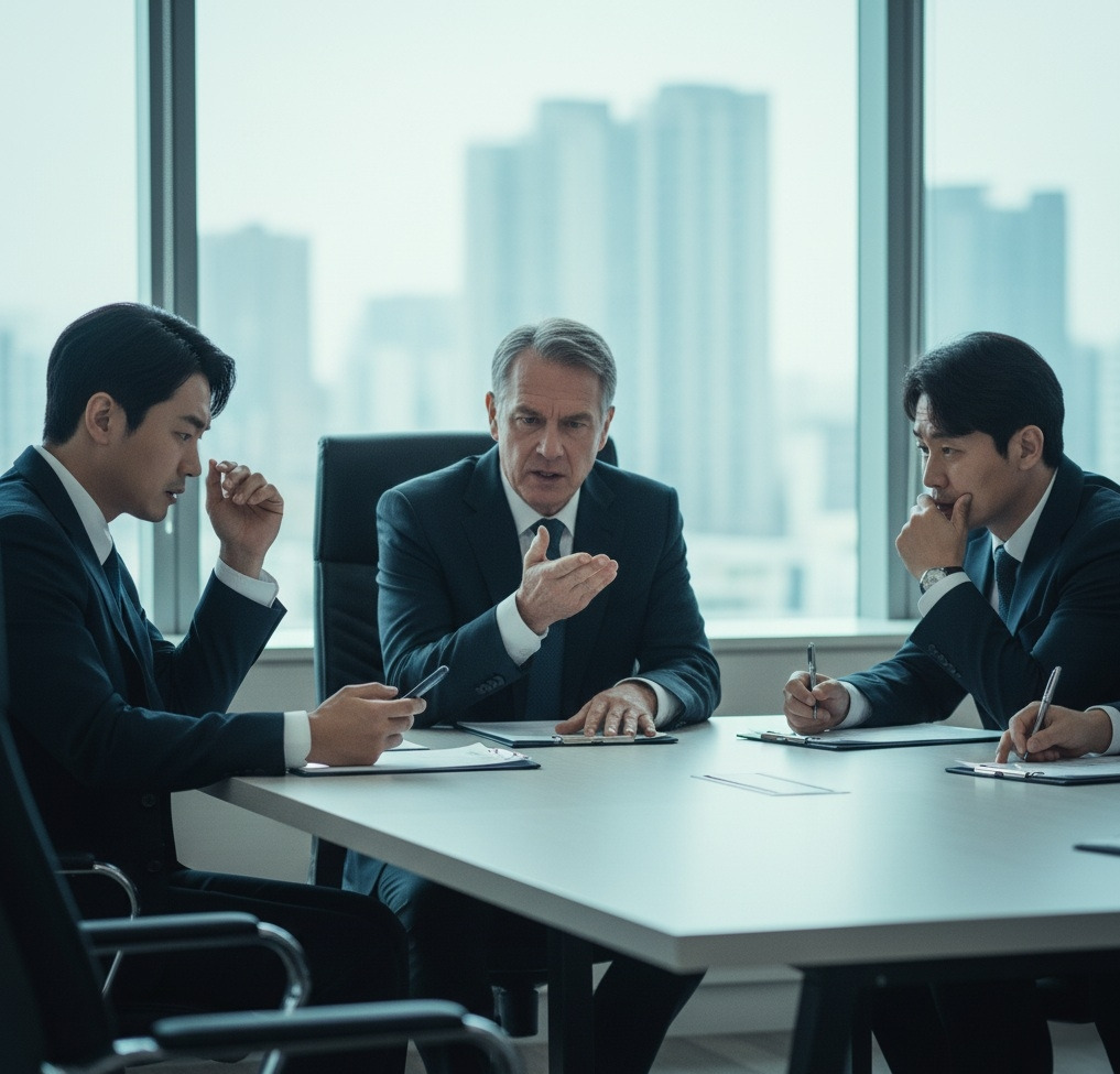 어느 날, 중요한 미팅에서: