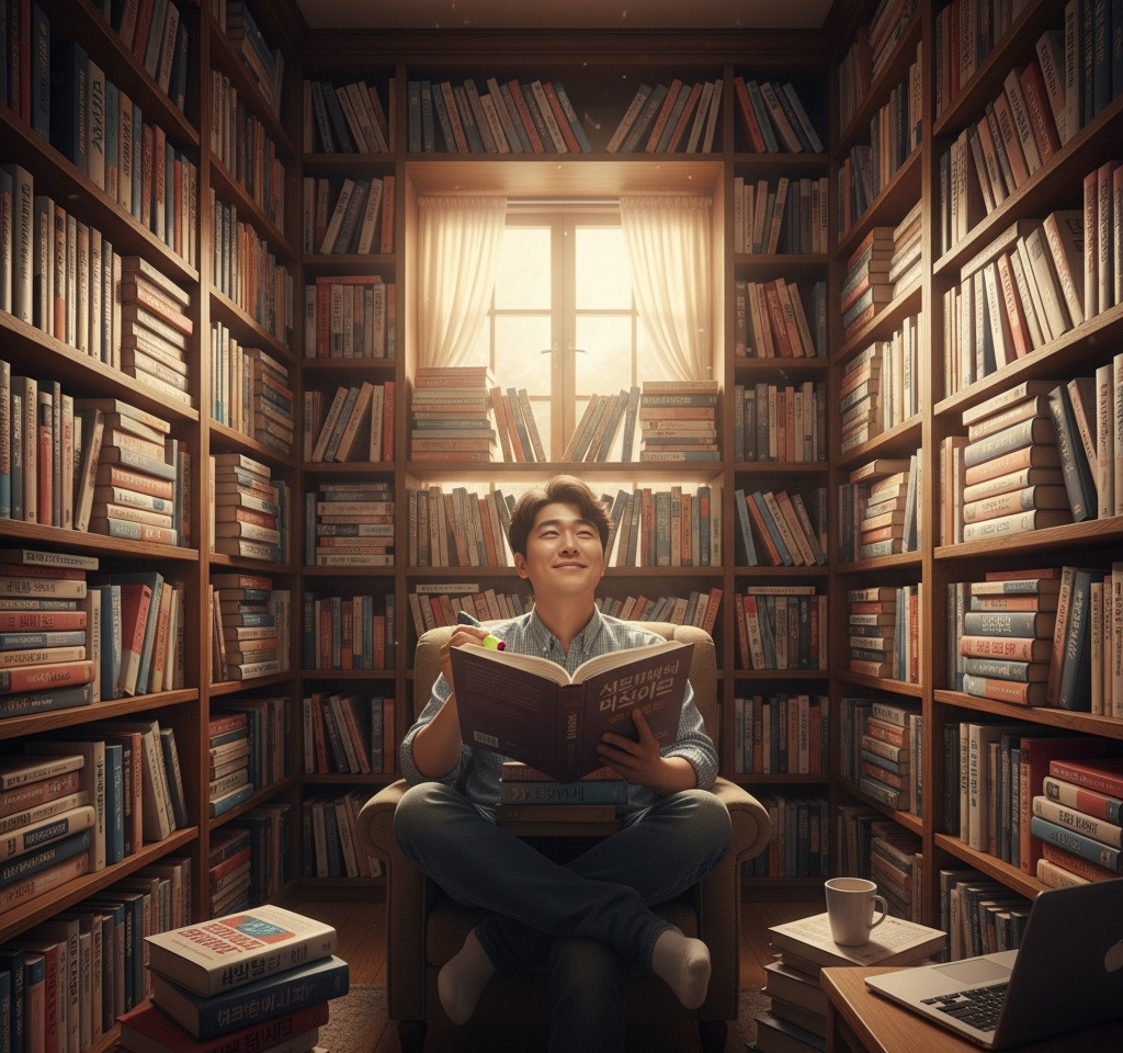 이대리 님은 자기계발서 마니아였습니다. 서점가에서 새로 나온 자기계발서는 모두 읽었고, 밑줄을 긋고 메모까지 하며 열정적으로 책을 탐독했습니다. 그의 책장에는 성공, 부자, 습관, 시간 관리 등 다양한 주제의 자기계발서가 빼곡했습니다. 하지만 그의 삶은 크게 변하지 않았습니다. 항상 '언젠가는 저 책에 나온 대로 해야지'라고 생각했지만, 실제 행동으로 옮기는 일은 드물었습니다.