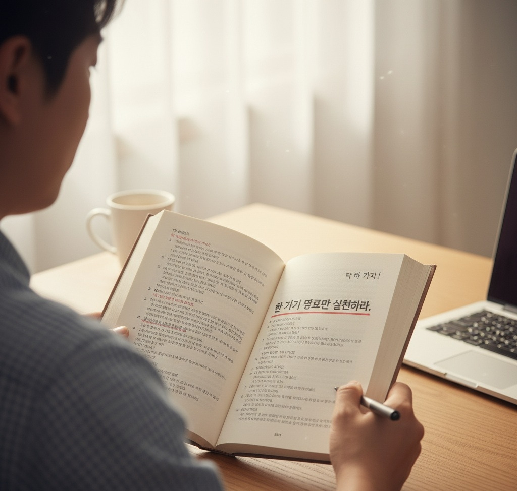 그는 자신의 모습을 보며 깊은 회의감에 빠졌습니다. '책만 읽는다고 달라지는 건 없구나'라는 생각이 들었습니다. 그때 '한 권의 책에서 딱 한 가지만 실천하라'는 조언이 떠올랐습니다.