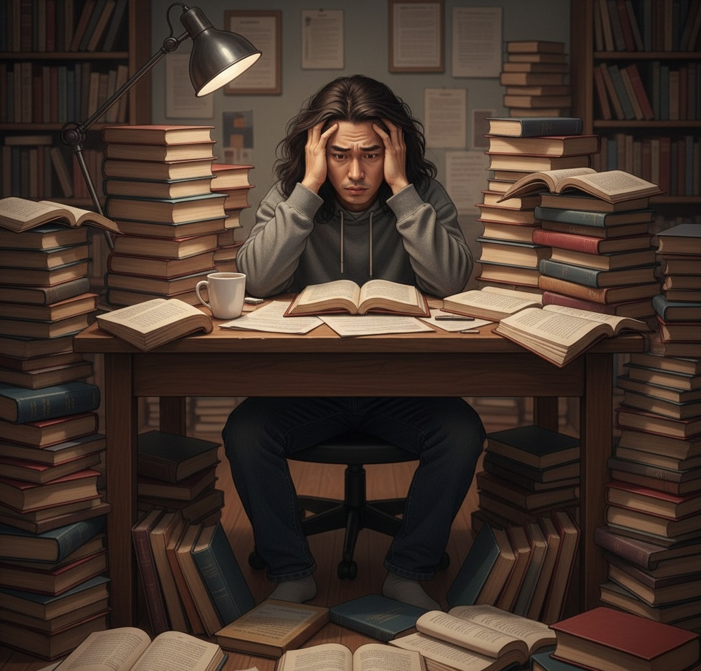 이대리 님은 '더 이상 미루지 말고 오늘부터 실천하자!'라는 결심을 했습니다. 그는 최근 읽었던 시간 관리 책에서 '중요한 일부터 먼저 처리하라'는 내용을 떠올렸습니다. 하지만 책에는 여러 가지 시간 관리 기법이 너무 많았고, 무엇부터 시작해야 할지 몰라 또다시 혼란스러워졌습니다. 결국 그는 새로운 자기계발서를 펼치며 '이 책에 더 좋은 방법이 있을 거야'라며 책 읽기에 몰두했고, 정작 중요한 프로젝트는 또다시 뒤로 밀리고 말았습니다.