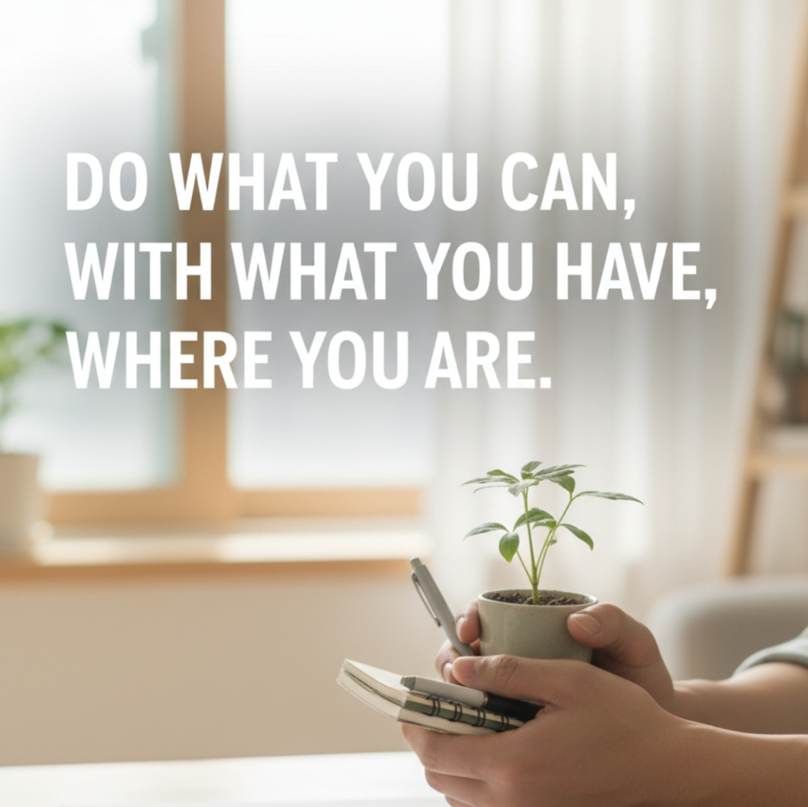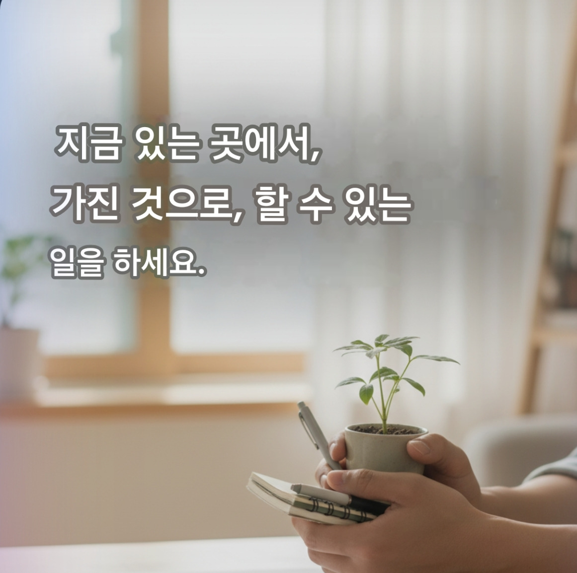 해법은 "지금 가진 것으로, 지금 있는 곳에서, 지금 할 수 있는 것을 하라"는 원칙입니다.