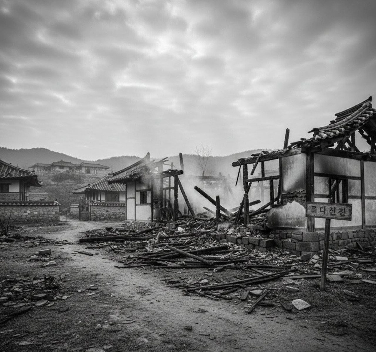 손에 쥔 것은 그녀가 남긴 작은 반지 하나. 금속이 열기에 달궈져 손바닥을 태웠지만, 그는 놓을 수 없었다.